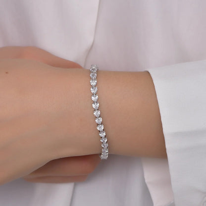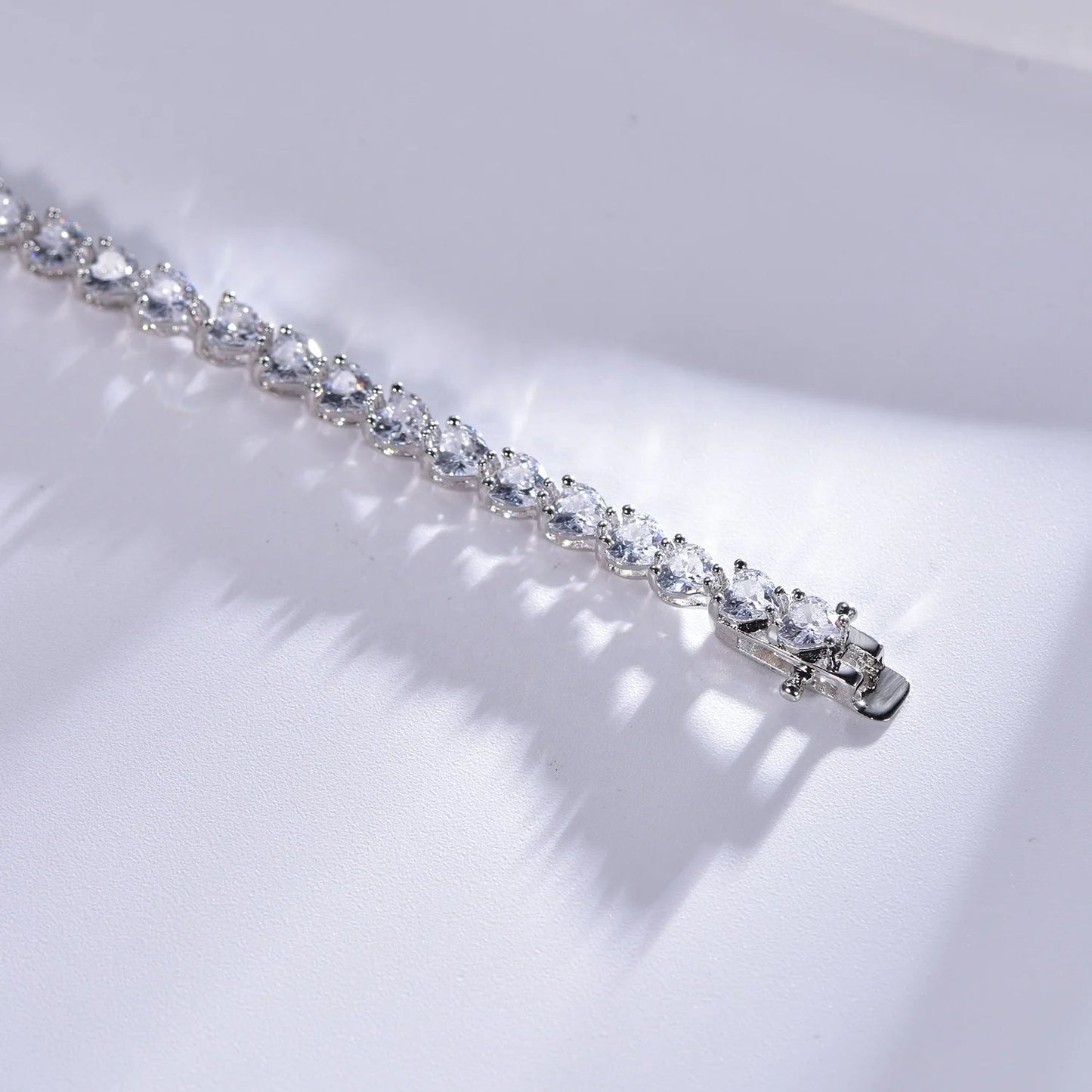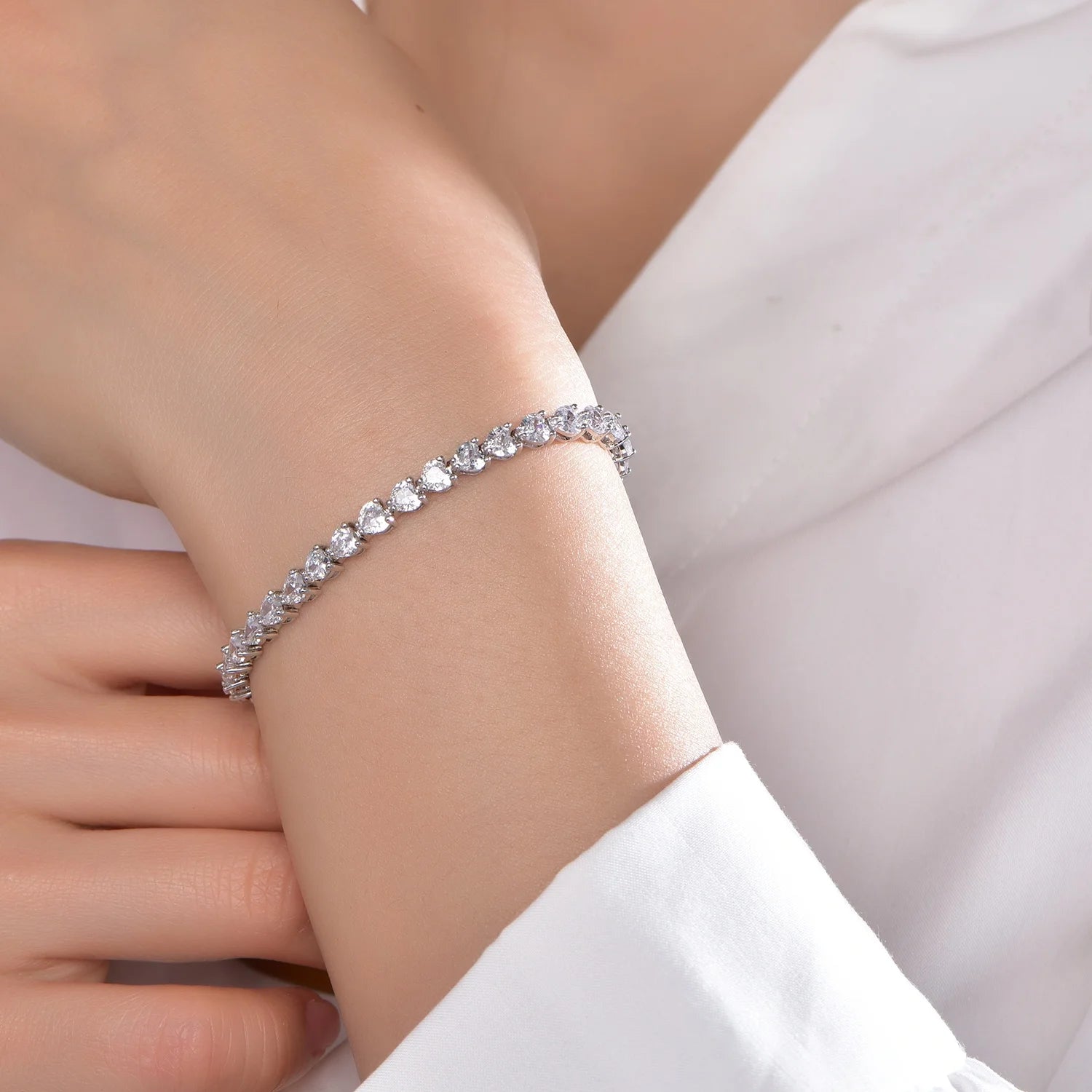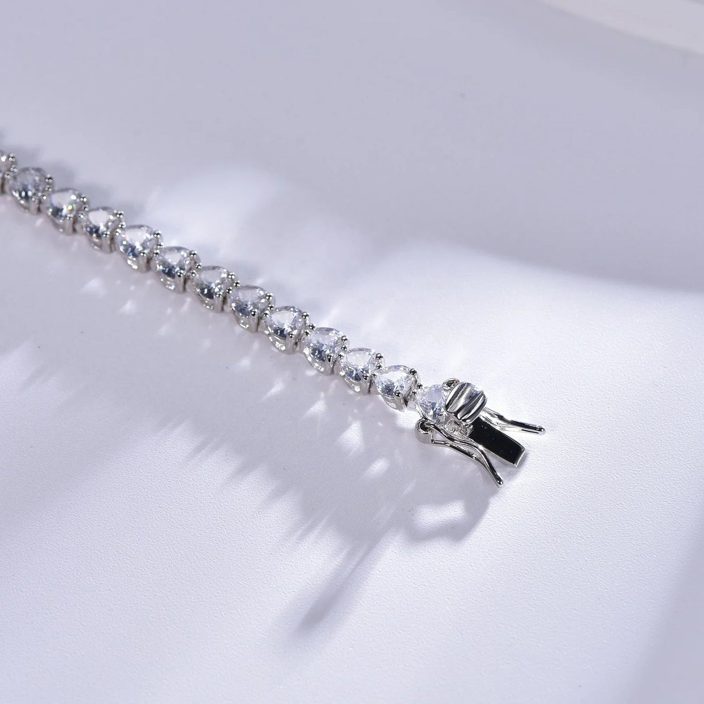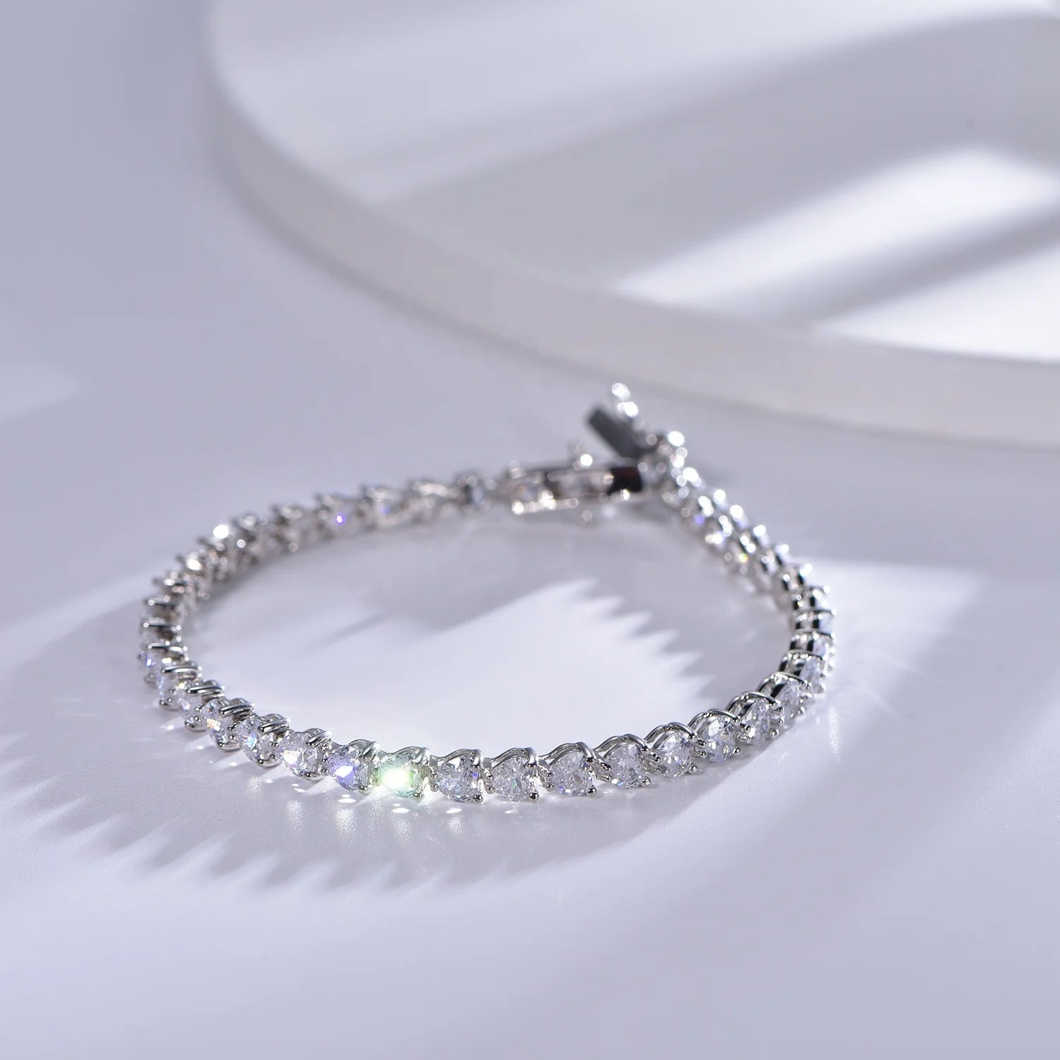 Custom 925 Silver Cubic Zircon Lab Created Diamond Heart Tennis Bracelet