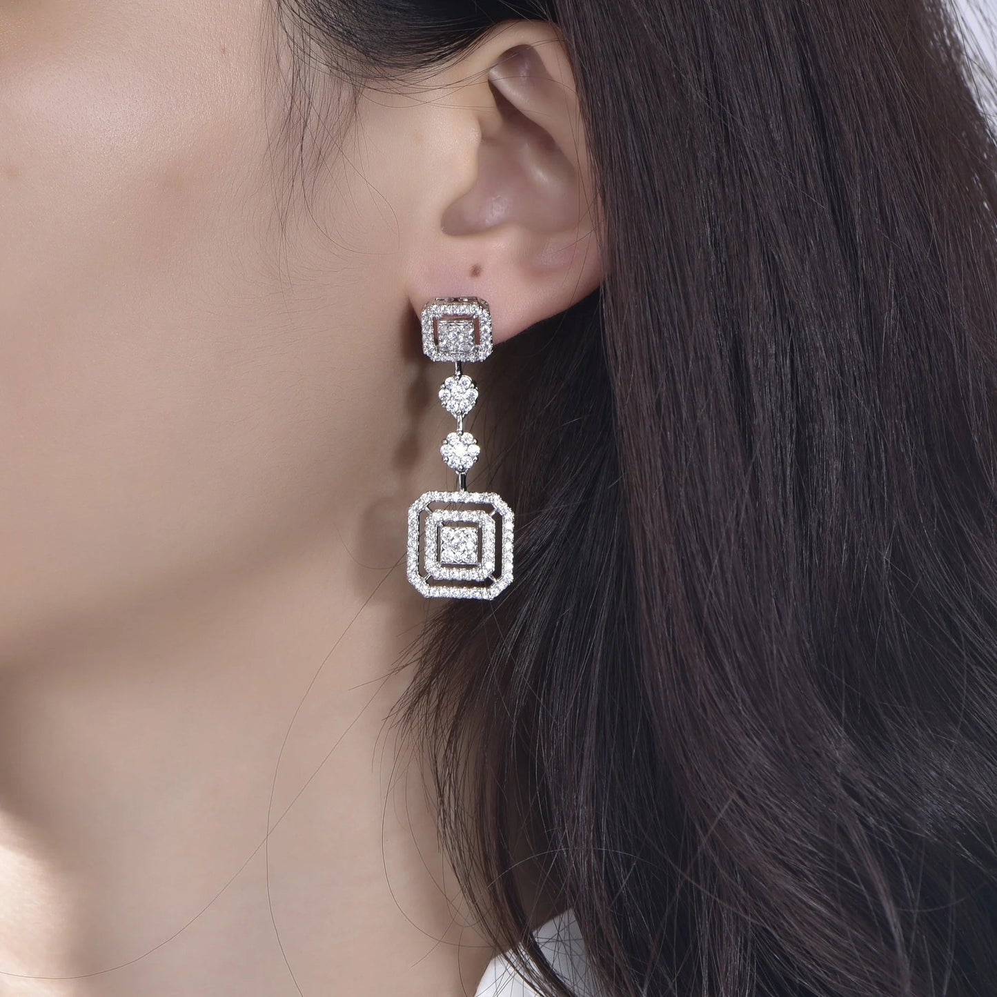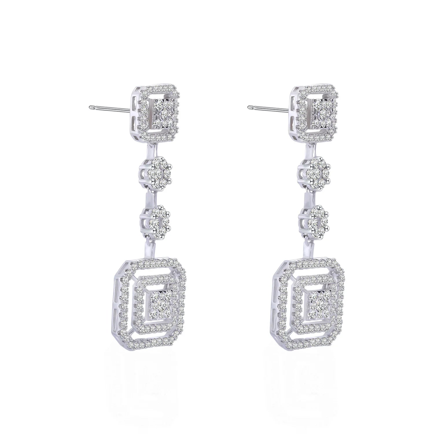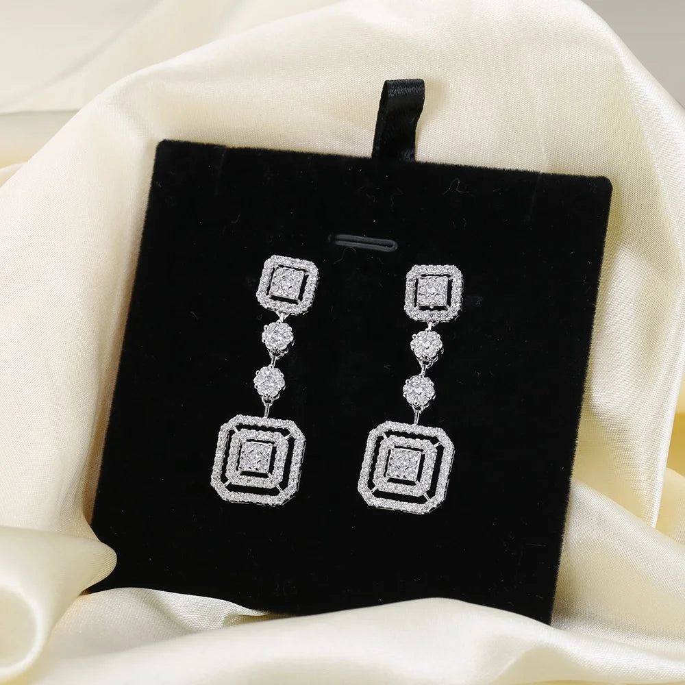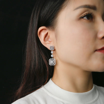 925 sterling silver earrings trendy women jewelry square shaped 5a cubic zirconia earrings dangle earrings