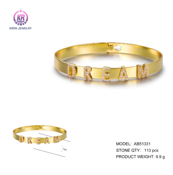 Custom Silver Gold Plated CZ Breathe Metal Hinge Message Bangle Bracelets