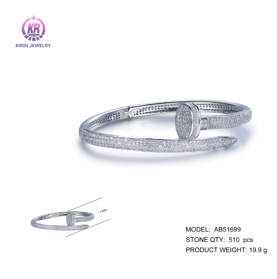 Wholesale 925 Silver Cubic Zircon Statement Nail Bangle Bracelet