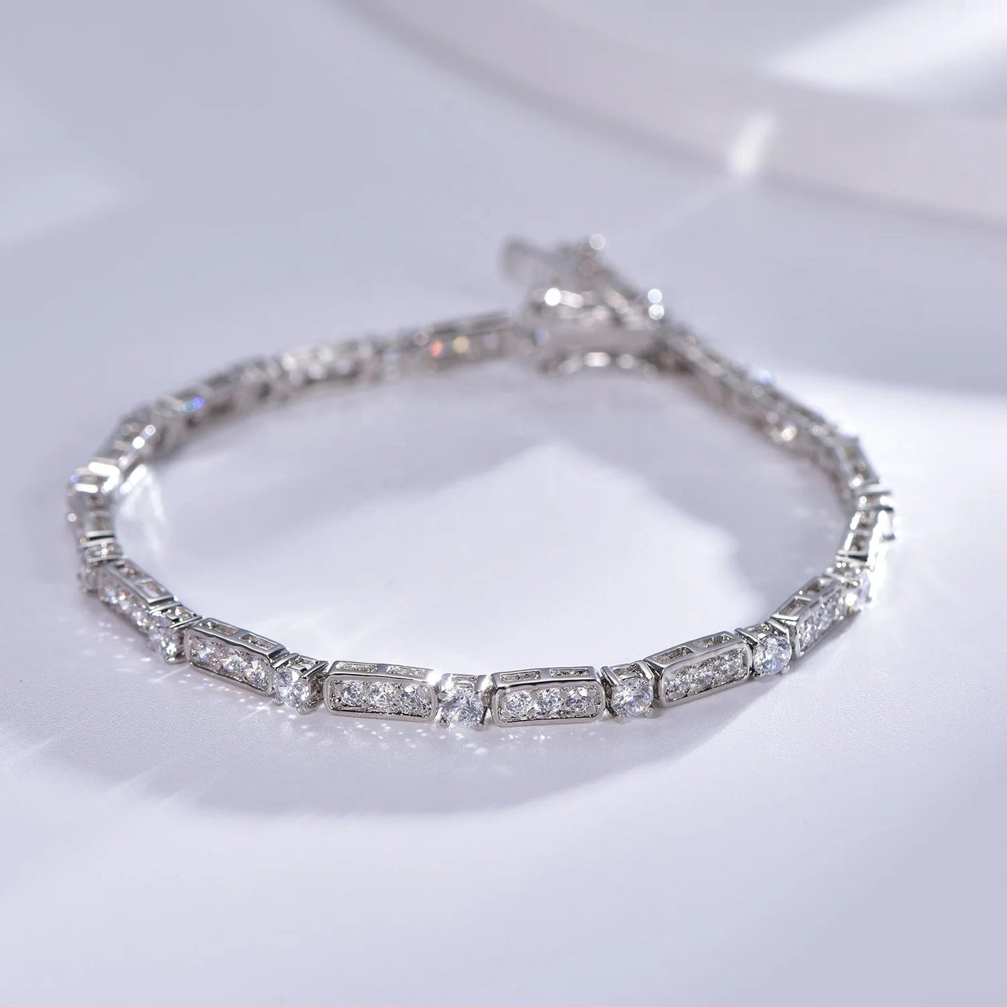 Wholesale Silver Cubic Zircon Created Diamond Unique Tennis Bracelet