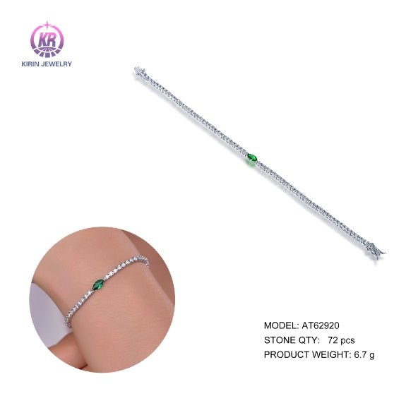 Wholesale Silver CZ & Glass Lab Grown Emerald Diamond Tennis Bracelet