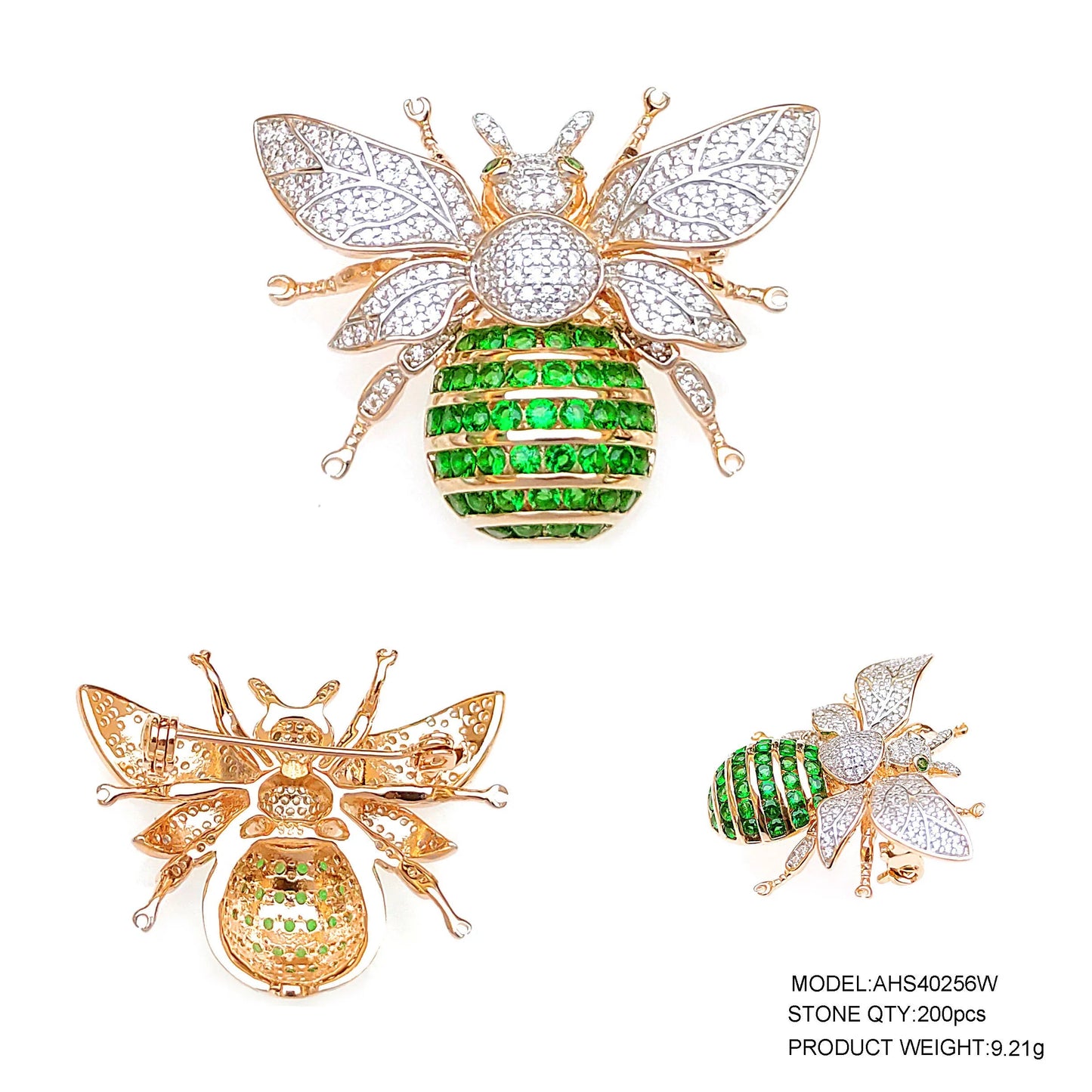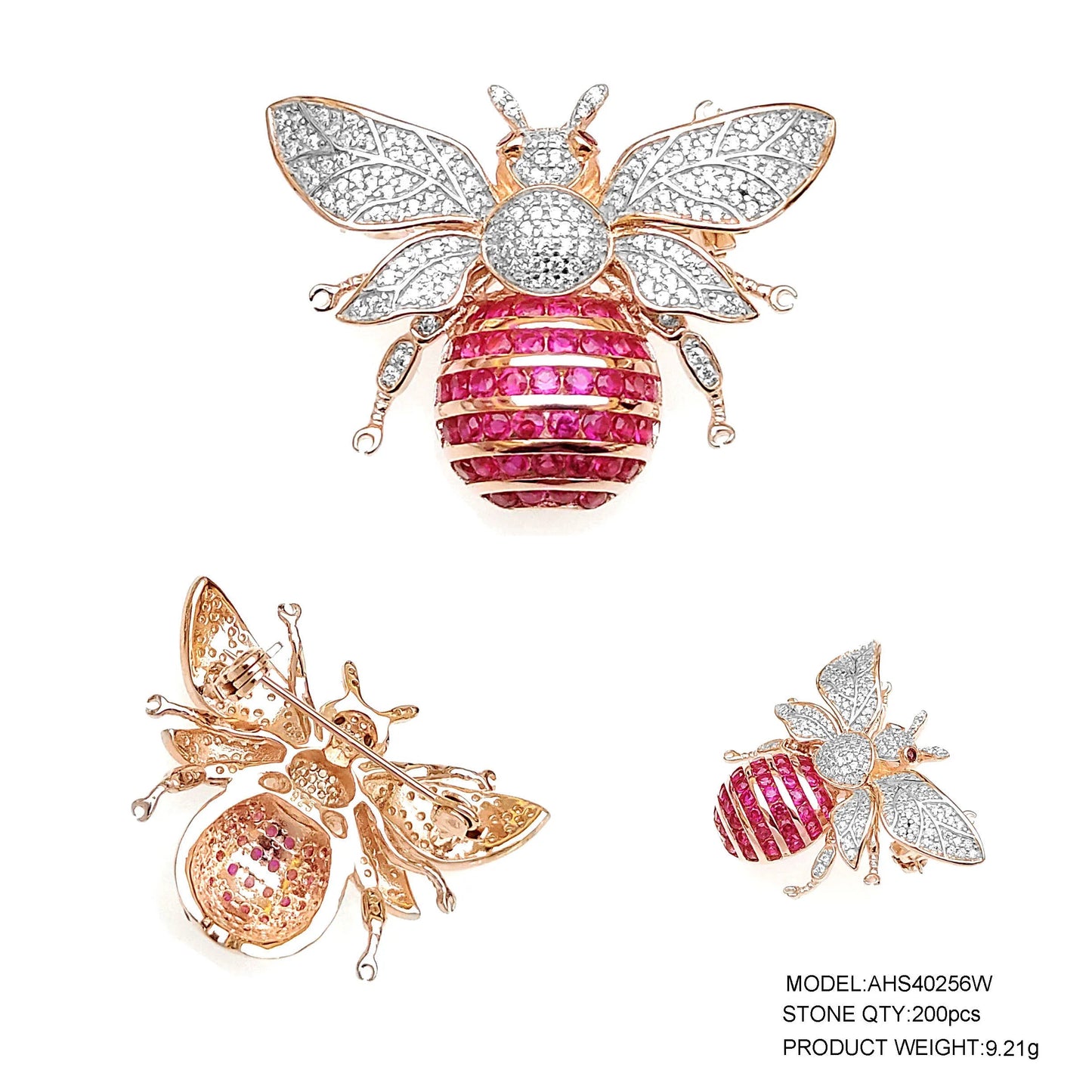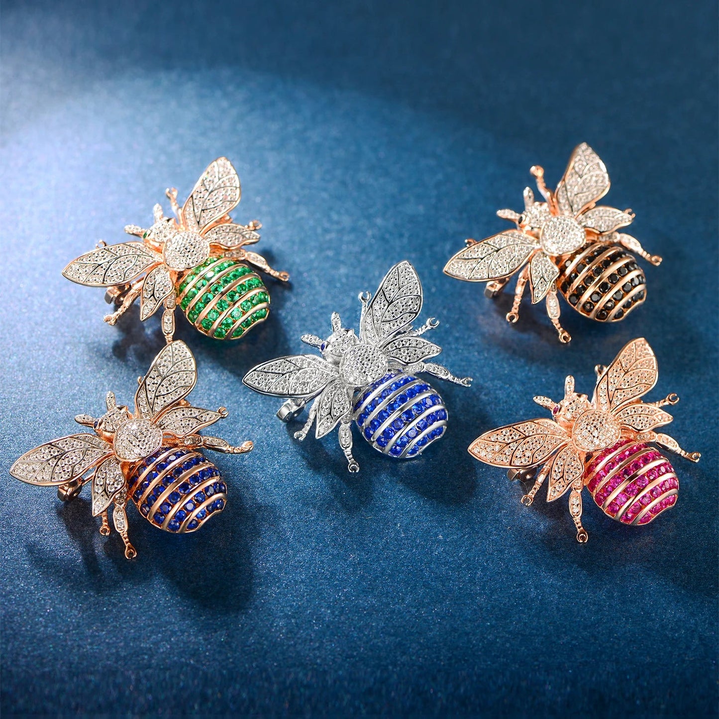 Custom Silver Rose Gold Plated CZ & Corundum & Spinel Bee Pins Brooches