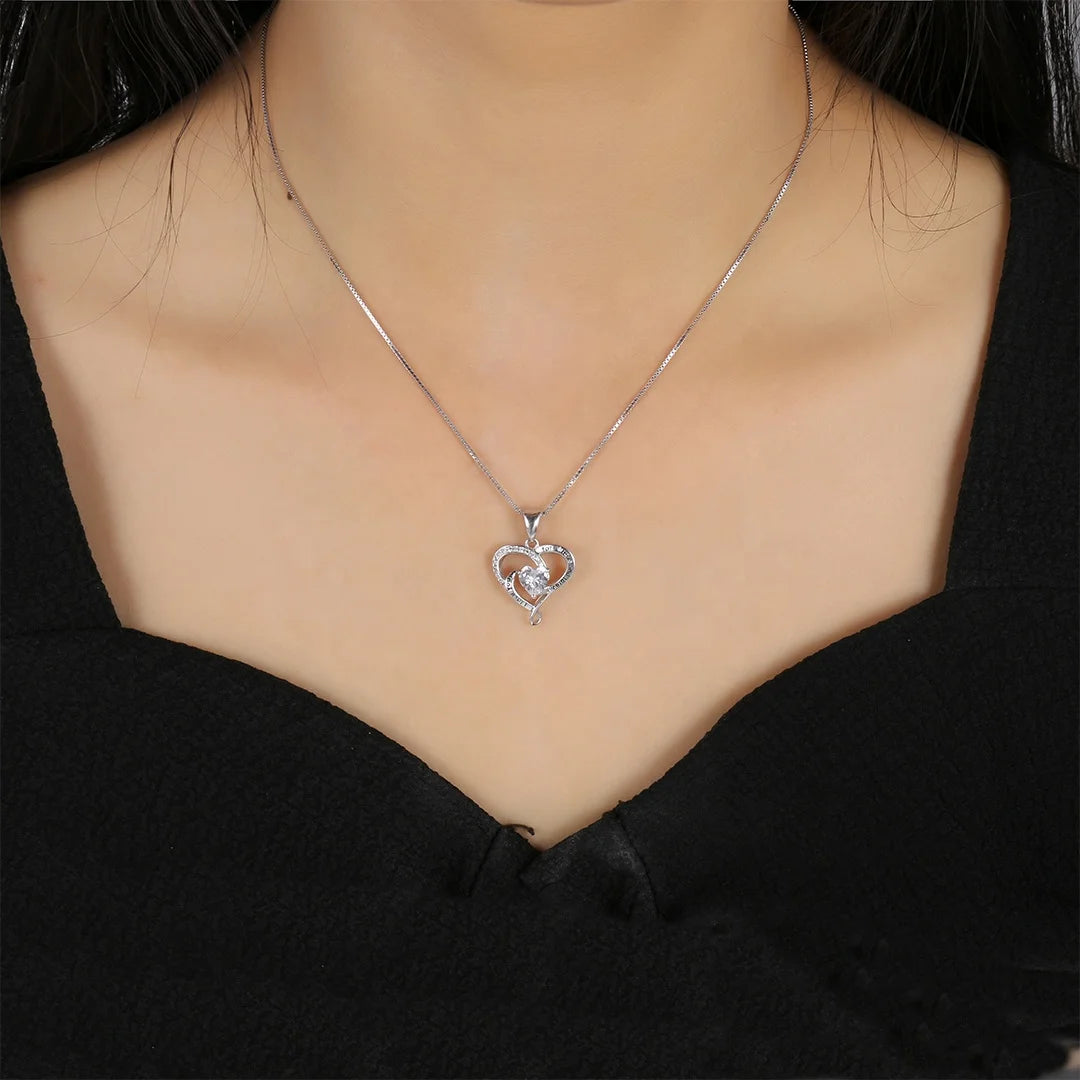 Custom Chain Necklace Pendant Letter 925 Silver Crystal Heart Shape Pendant 5A CZ heart pendant for woman