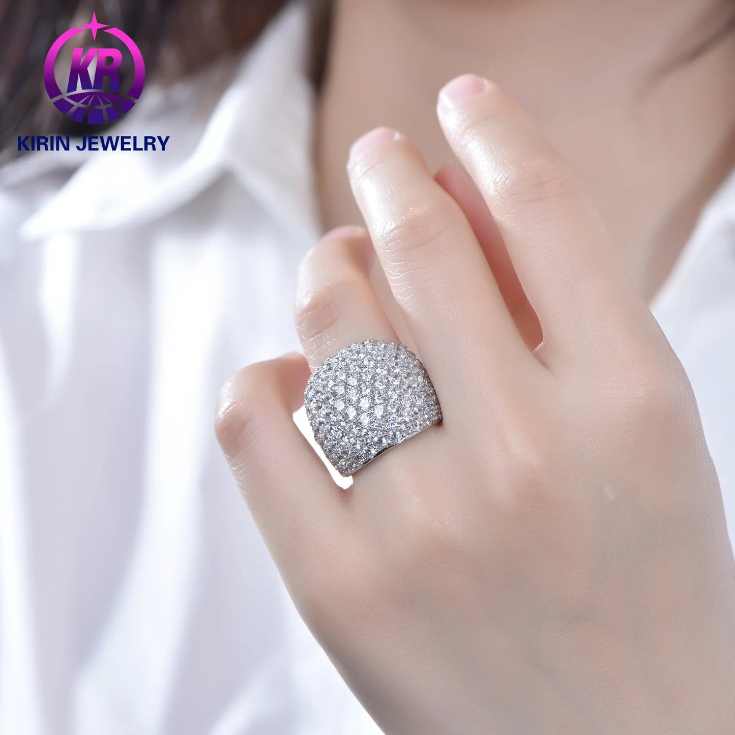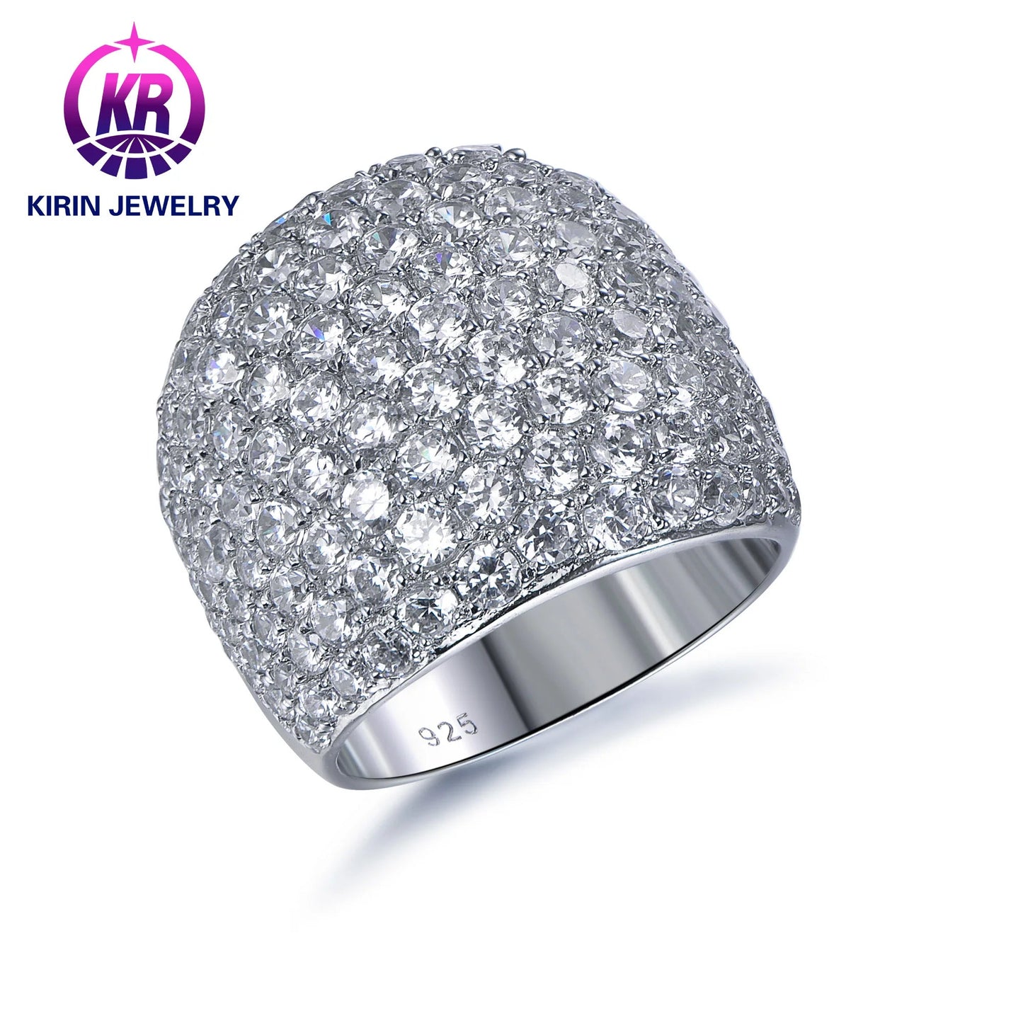 Wholesale Silver Round Cut CZ Simulated Diamond Chunky Wide Cluster Engagement Ring