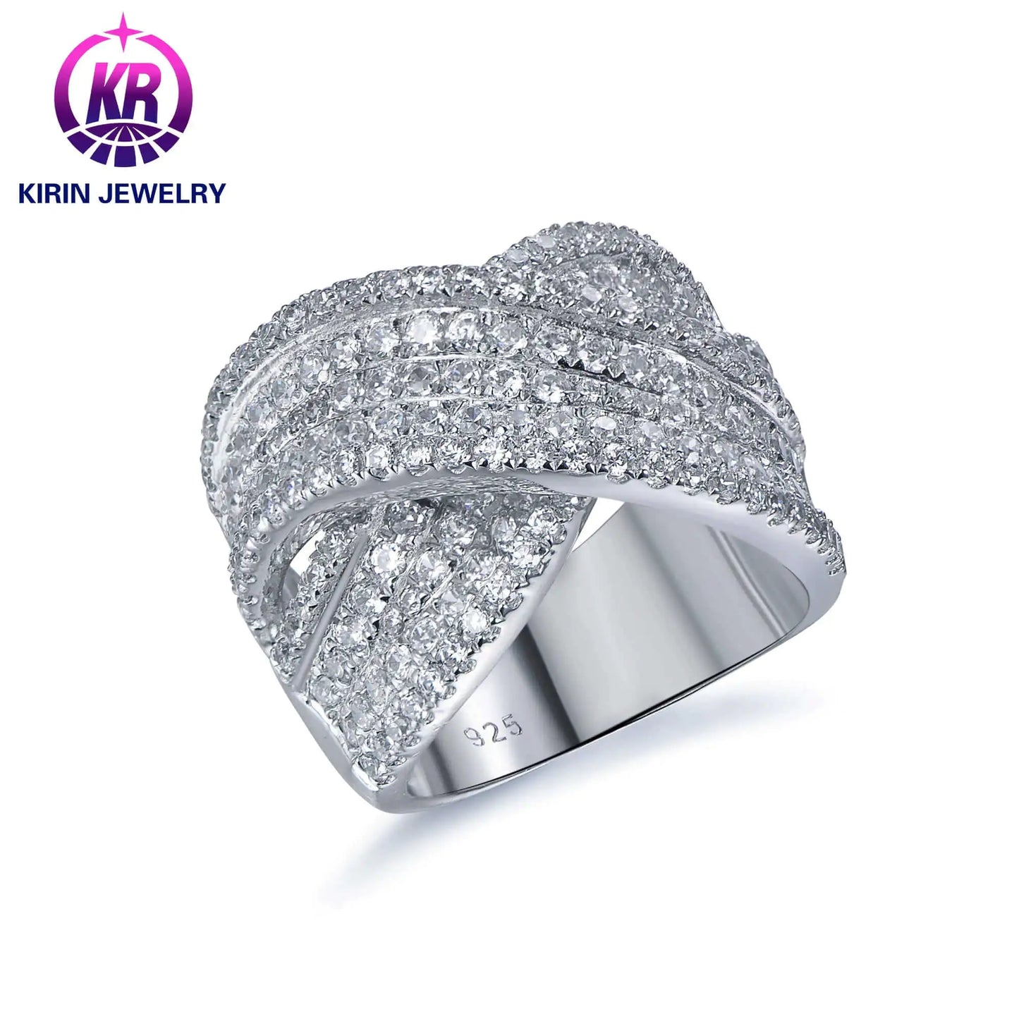 Wholesale Silver CZ Round Pave Set Diamond Engagement Criss Cross Ring