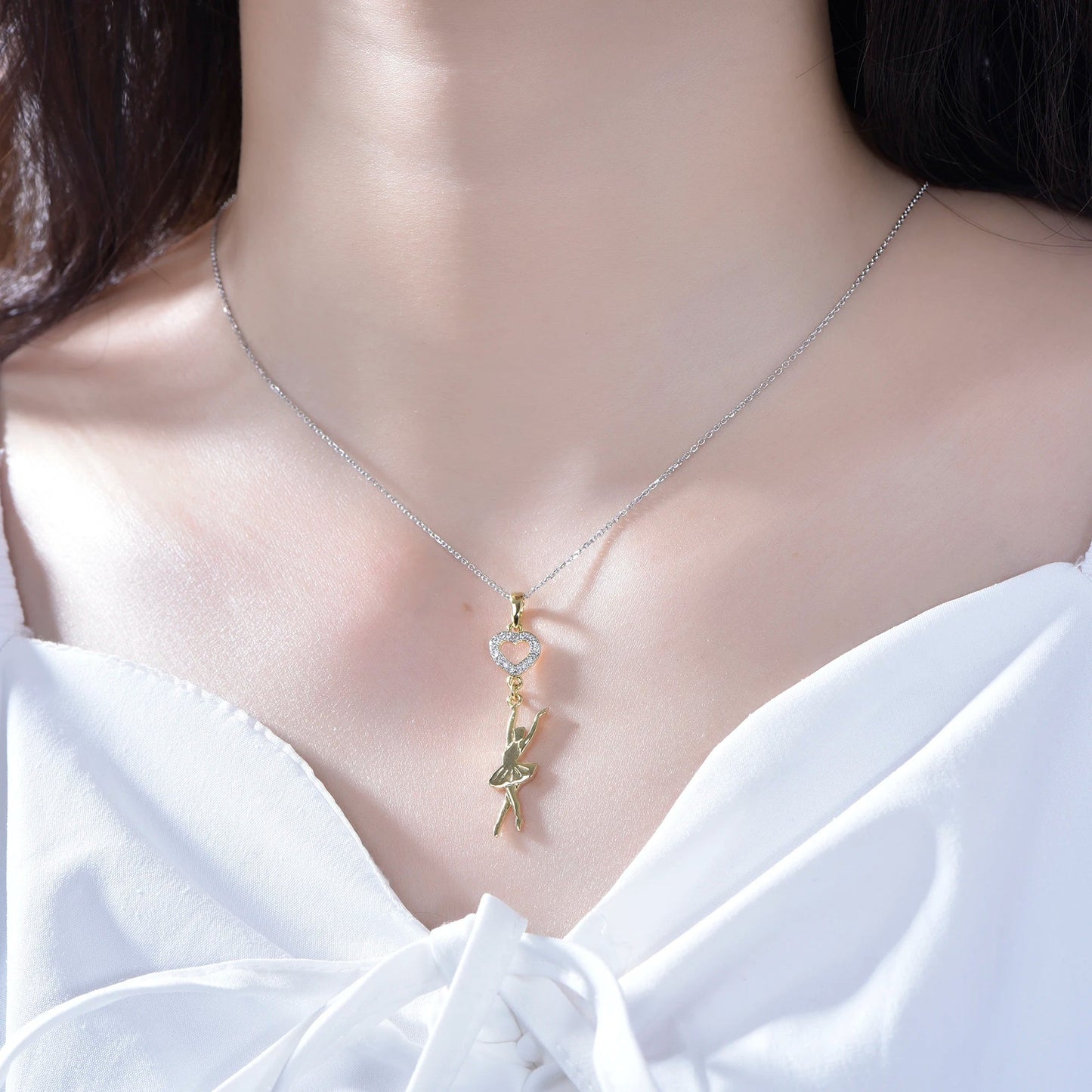 High Quality Custom 14K & 18K Gold Love Ballet Girl Pendant Charm Necklace For Women Girls Valentine Gift