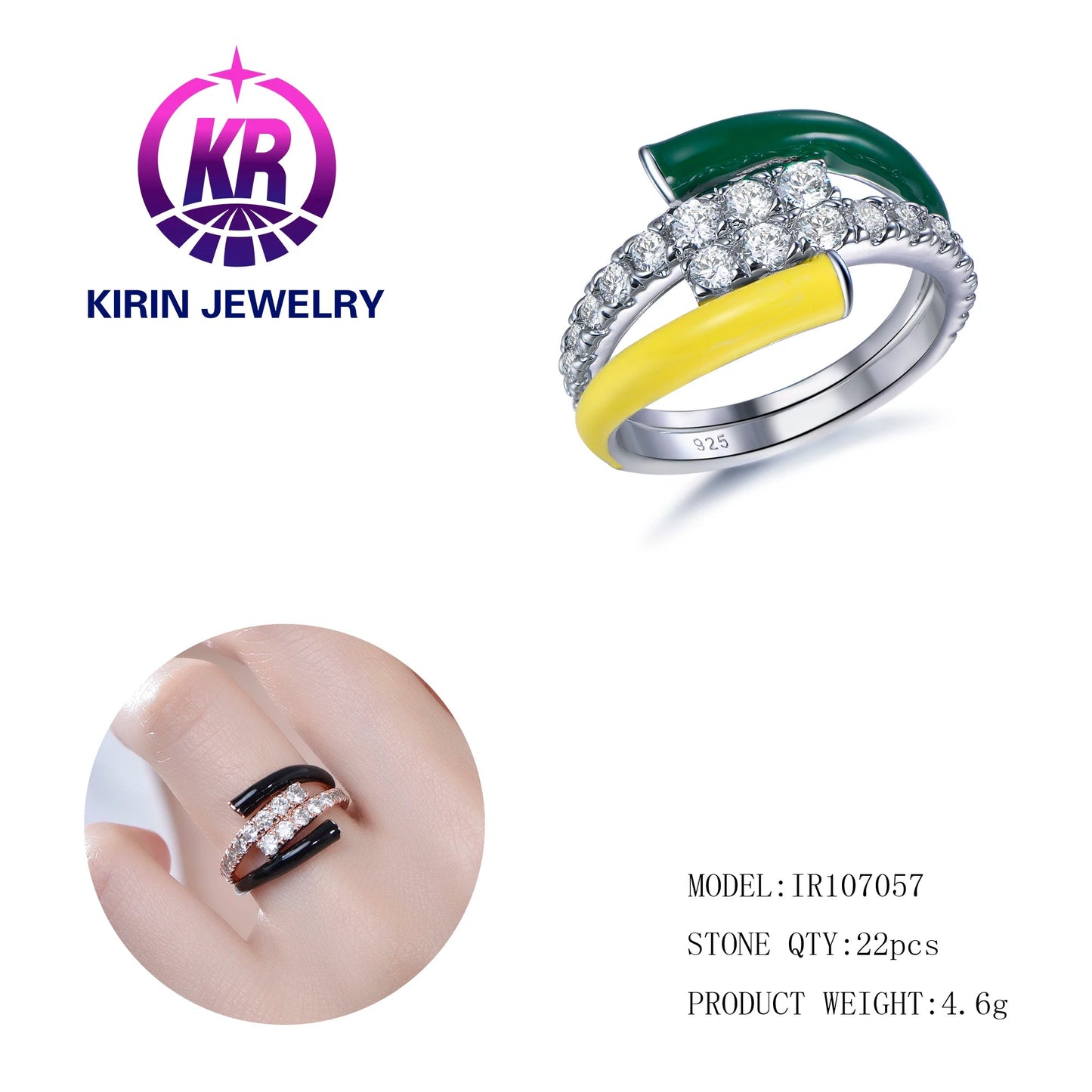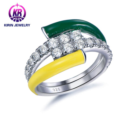 Custom 925 Silver Enamel CZ Statement Engagement Double Crossover Ring