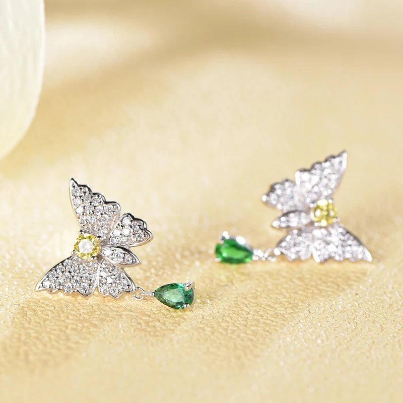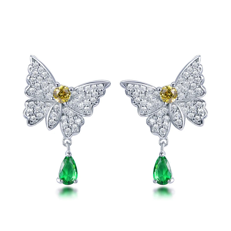 Wholesale Silver CZ & Glass Lab Created Emerald Butterfly Dangle Earrings