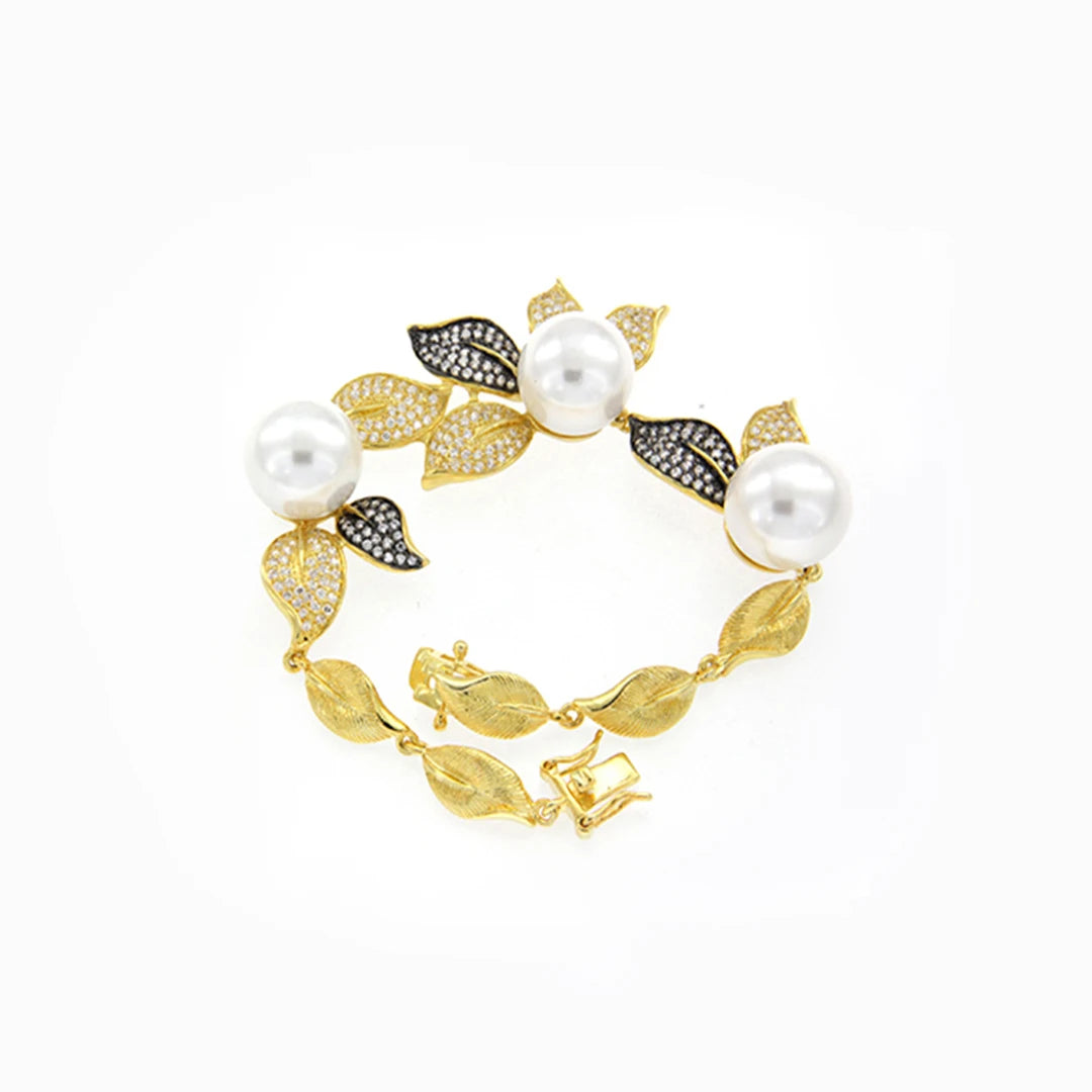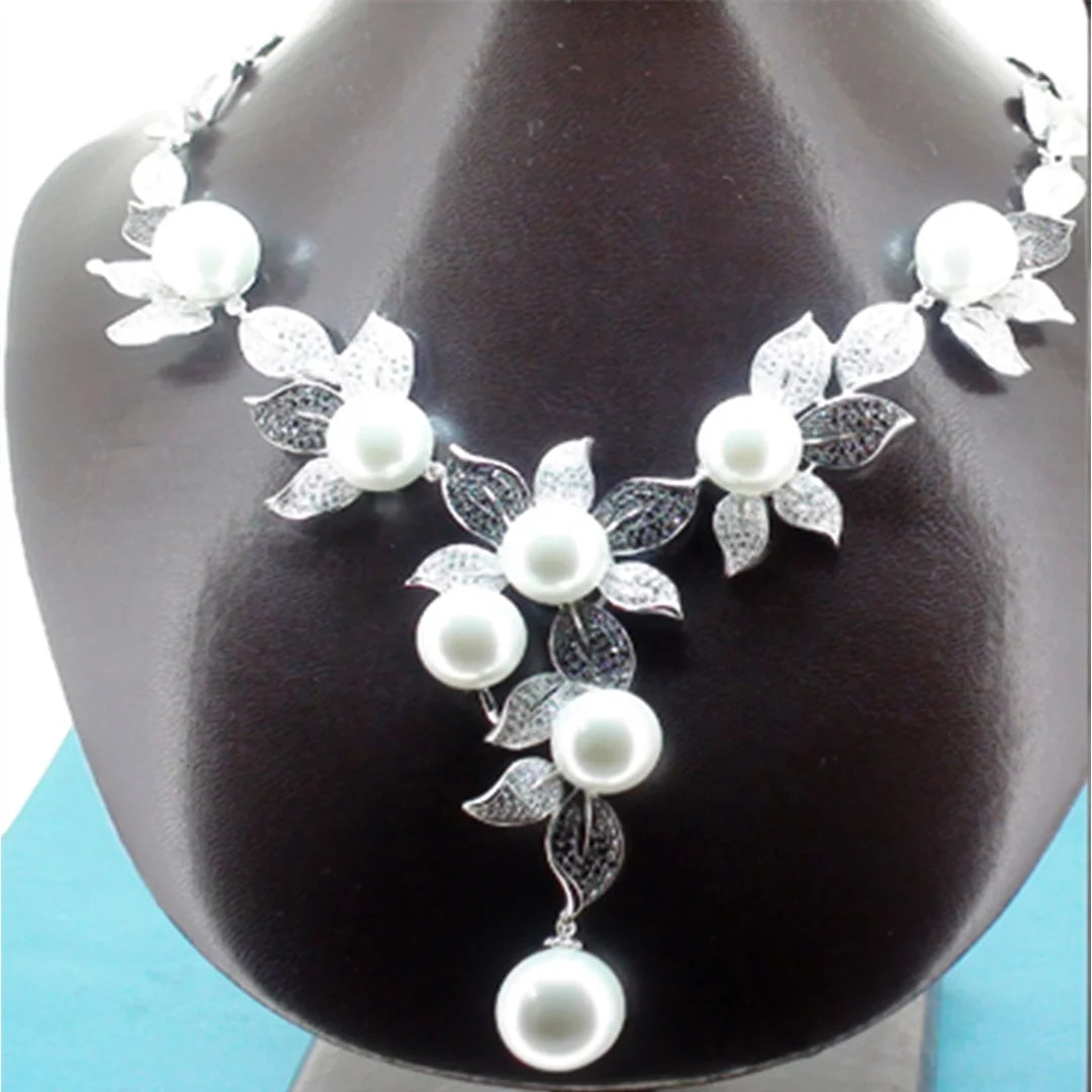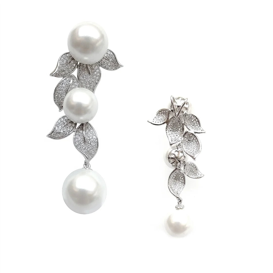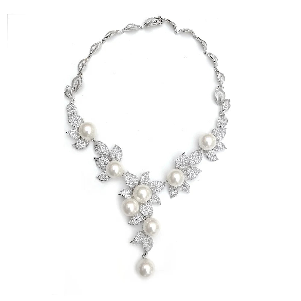 Wholesale Silver CZ & Pearl Leave Floral Shape Pearl Bridal Jewelry Sets