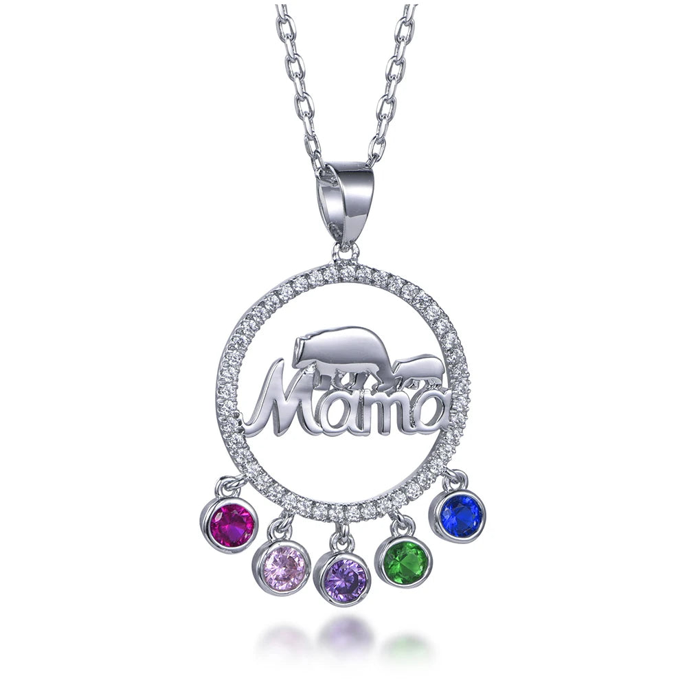 Women Gemstone Silver Necklaces Mother Daughter Heart Pendant Mother's Day Gift Baby Mom Initial Necklace Jewelry