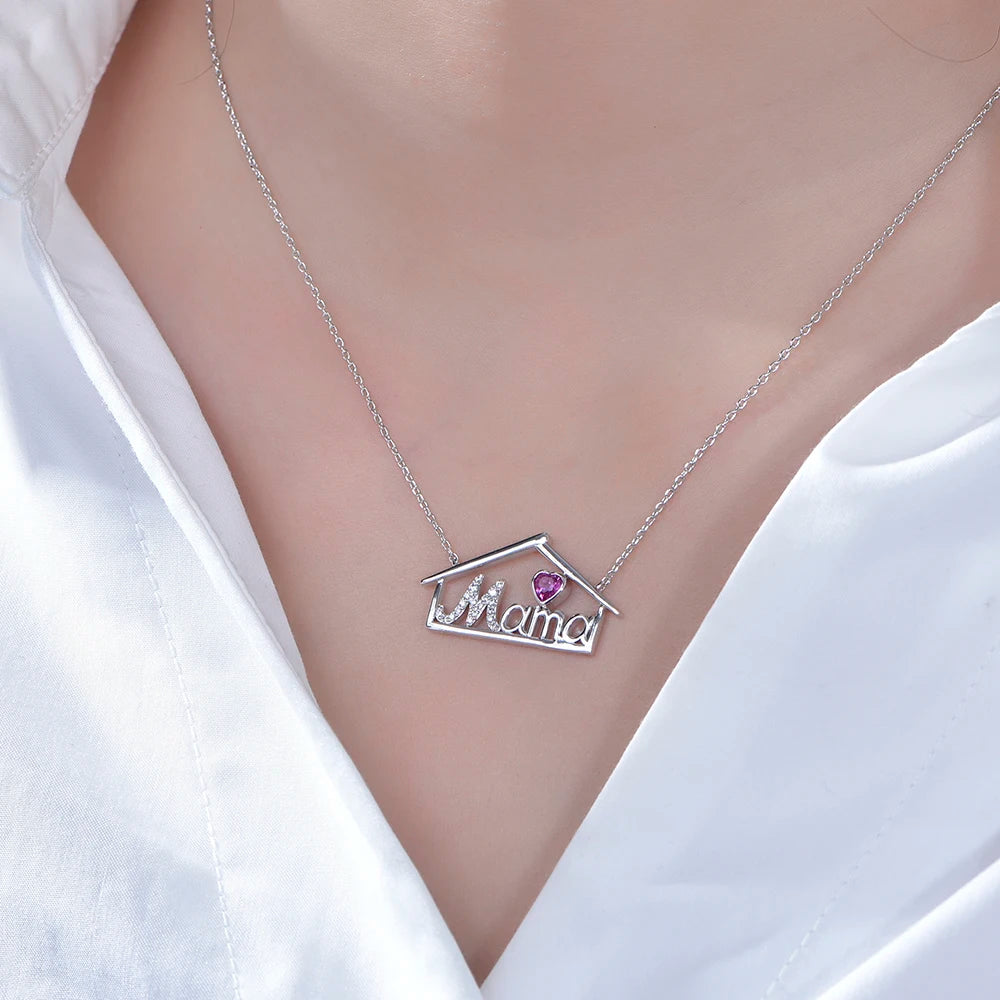 | Jewelry Type | Women Gemstone Silver Necklaces Mother Daughter Heart Pendant Mother's Day Gift Baby Mom Initial Necklace Jewelry |