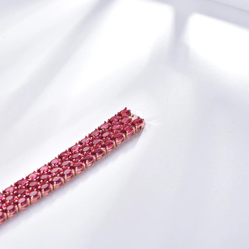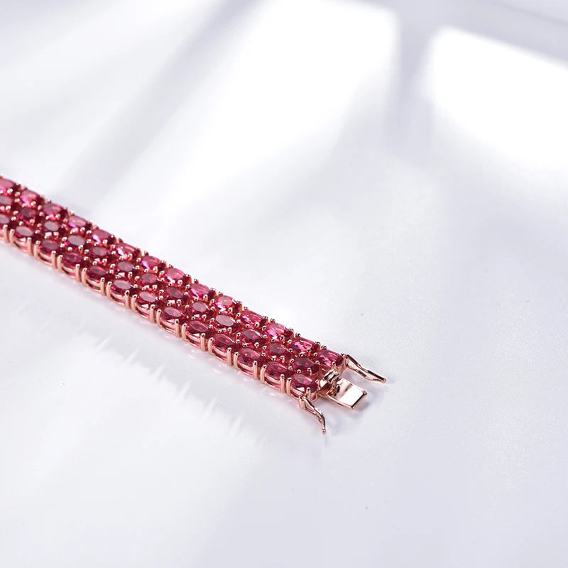 Custom Silver Rose Gold Plated Corundum Lab Created Ruby Tennis Bracelet