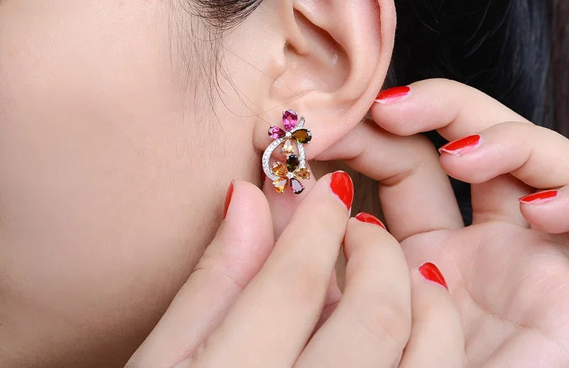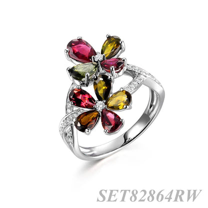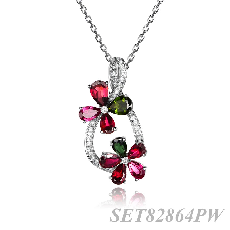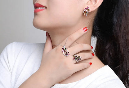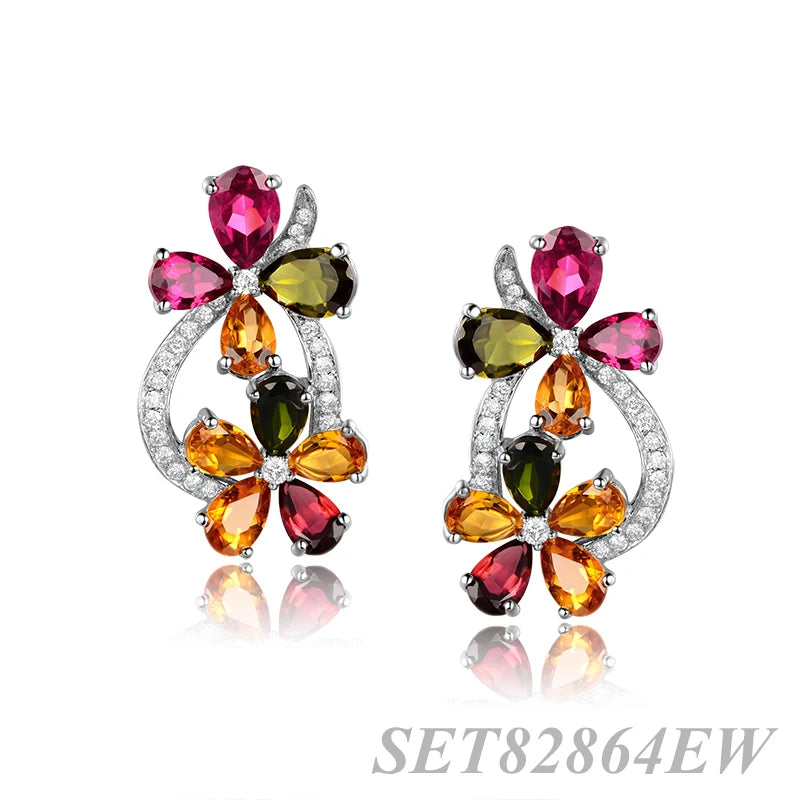 Custom Silver CZ & Corundum Mult-Color Gemstone Tear Drop Flower Bridal Jewelry Sets