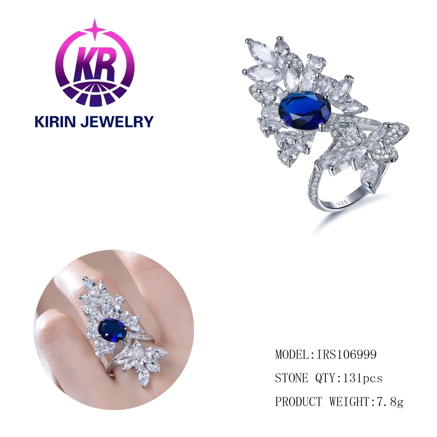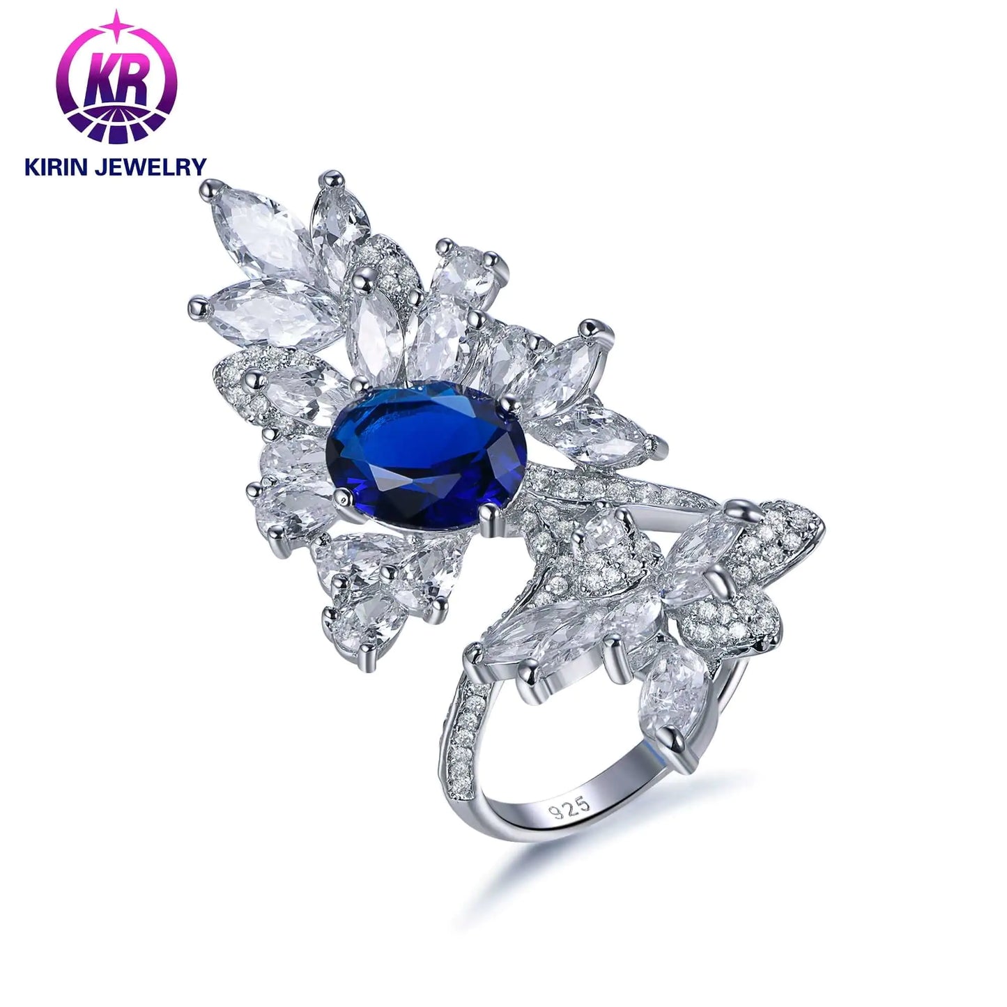 Wholesale 925 Silver CZ Lab Created Sapphire Climber Wrap Finger Leaf Engagement Ring