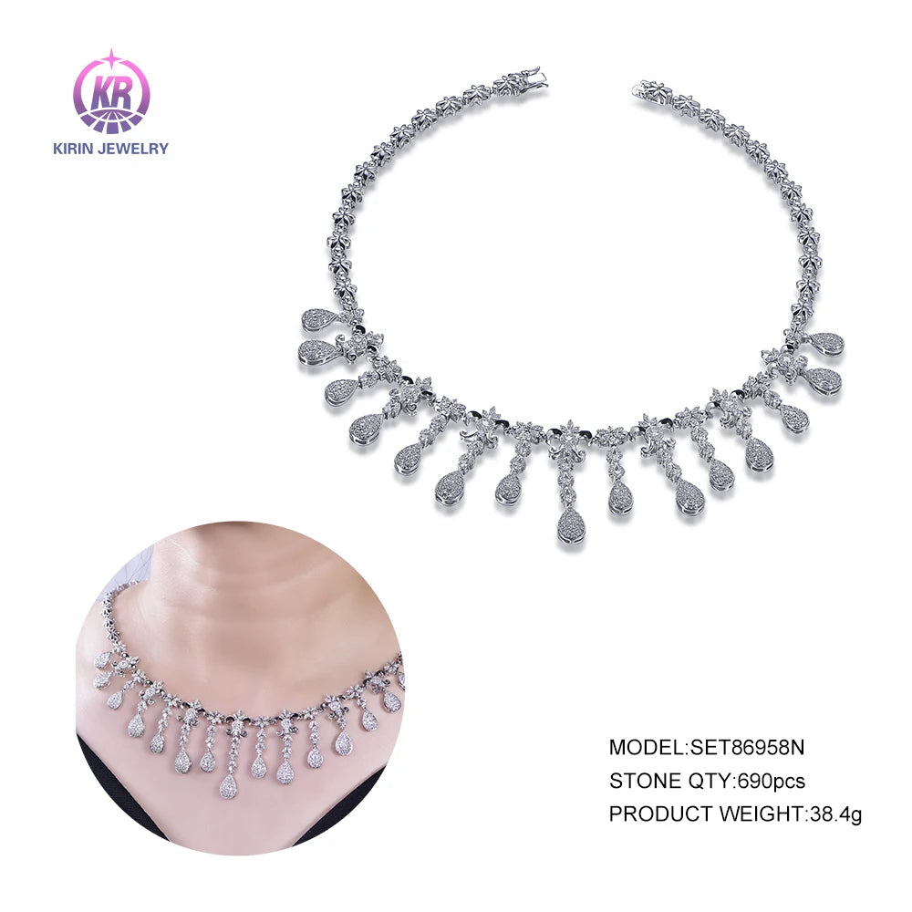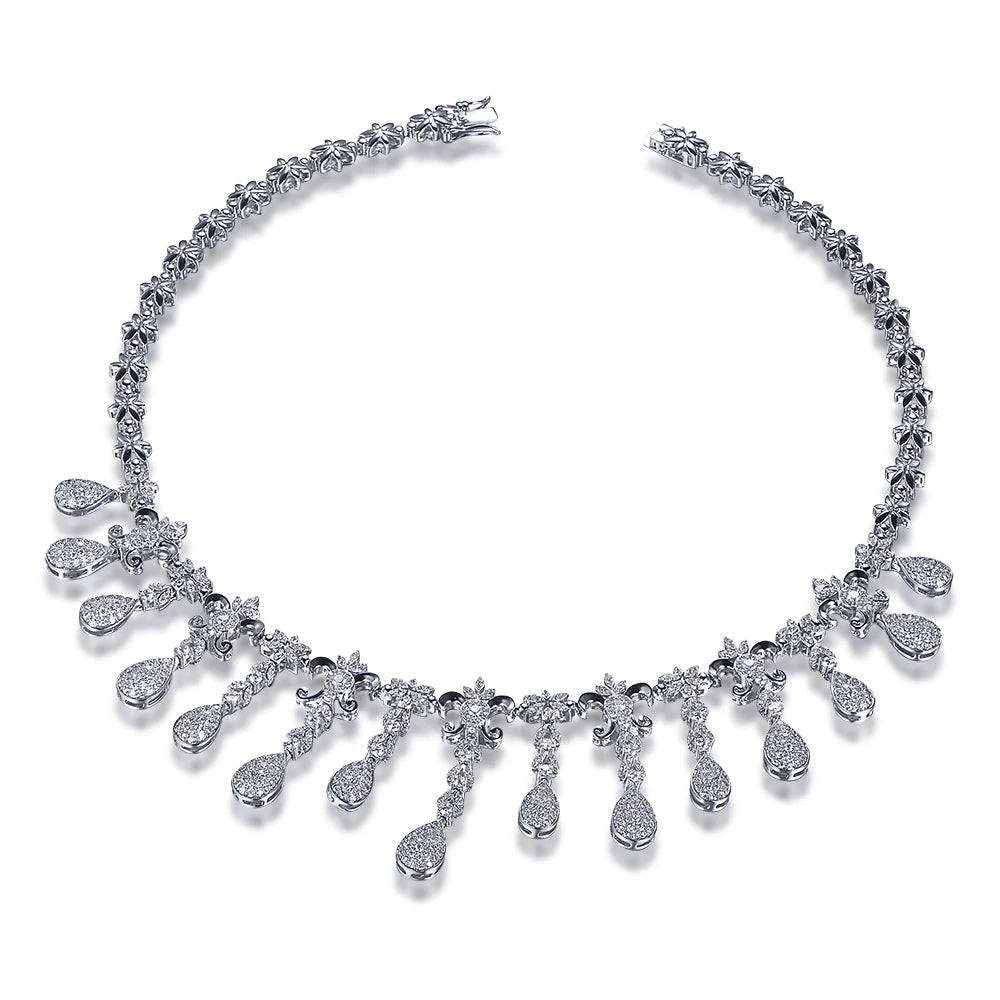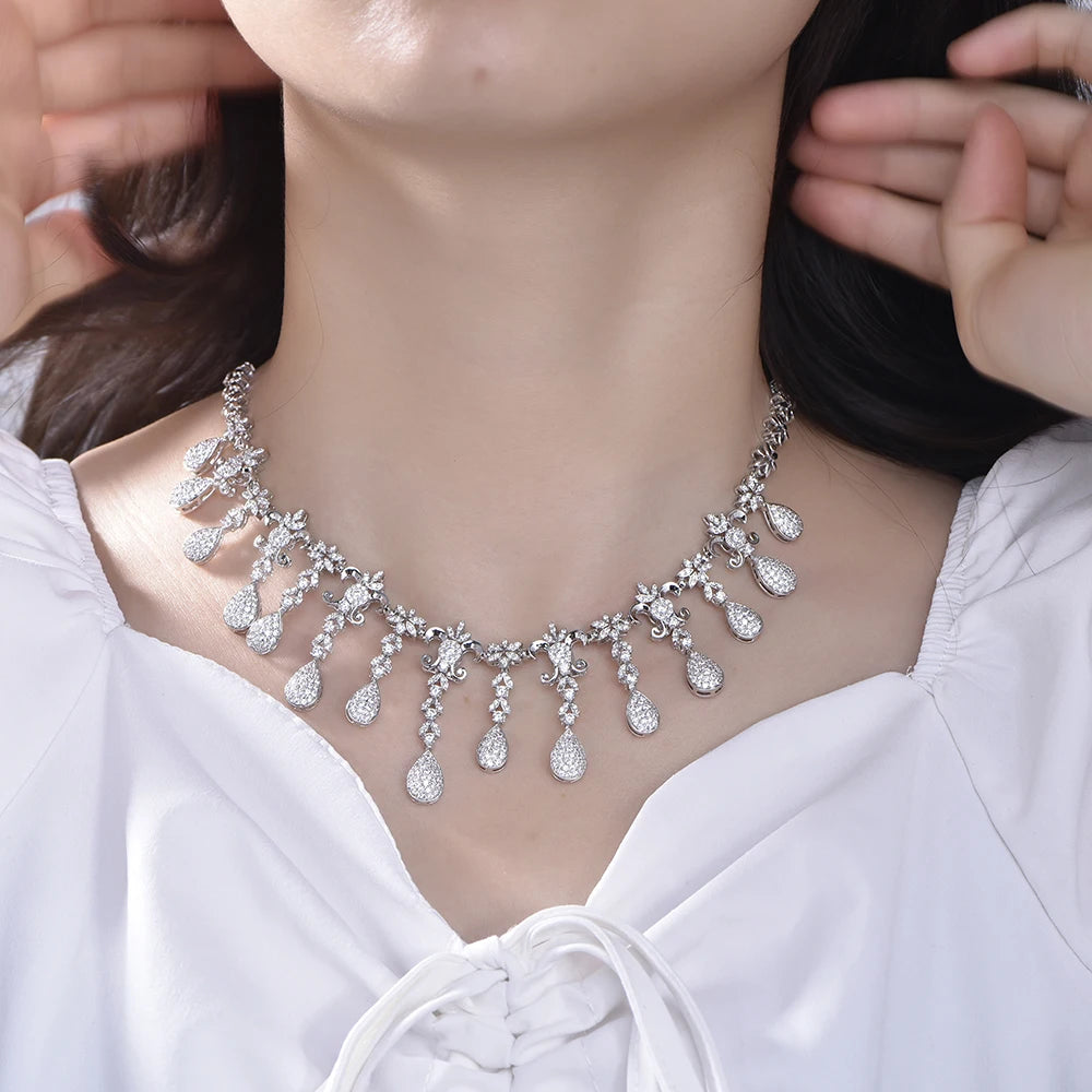 Luxury 925 Sterling Silver Choker Necklace With Flower Pear Shape Diamond Wedding Jewellery Necklaces For Bridal