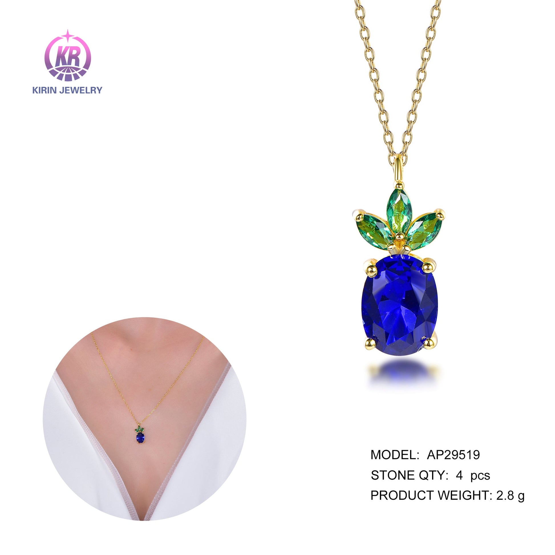 925 silver necklace with 14K gold plating sapphire CZ 29519