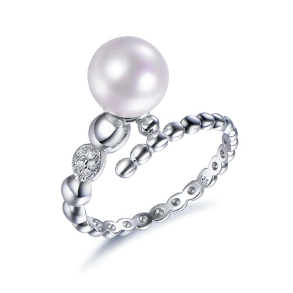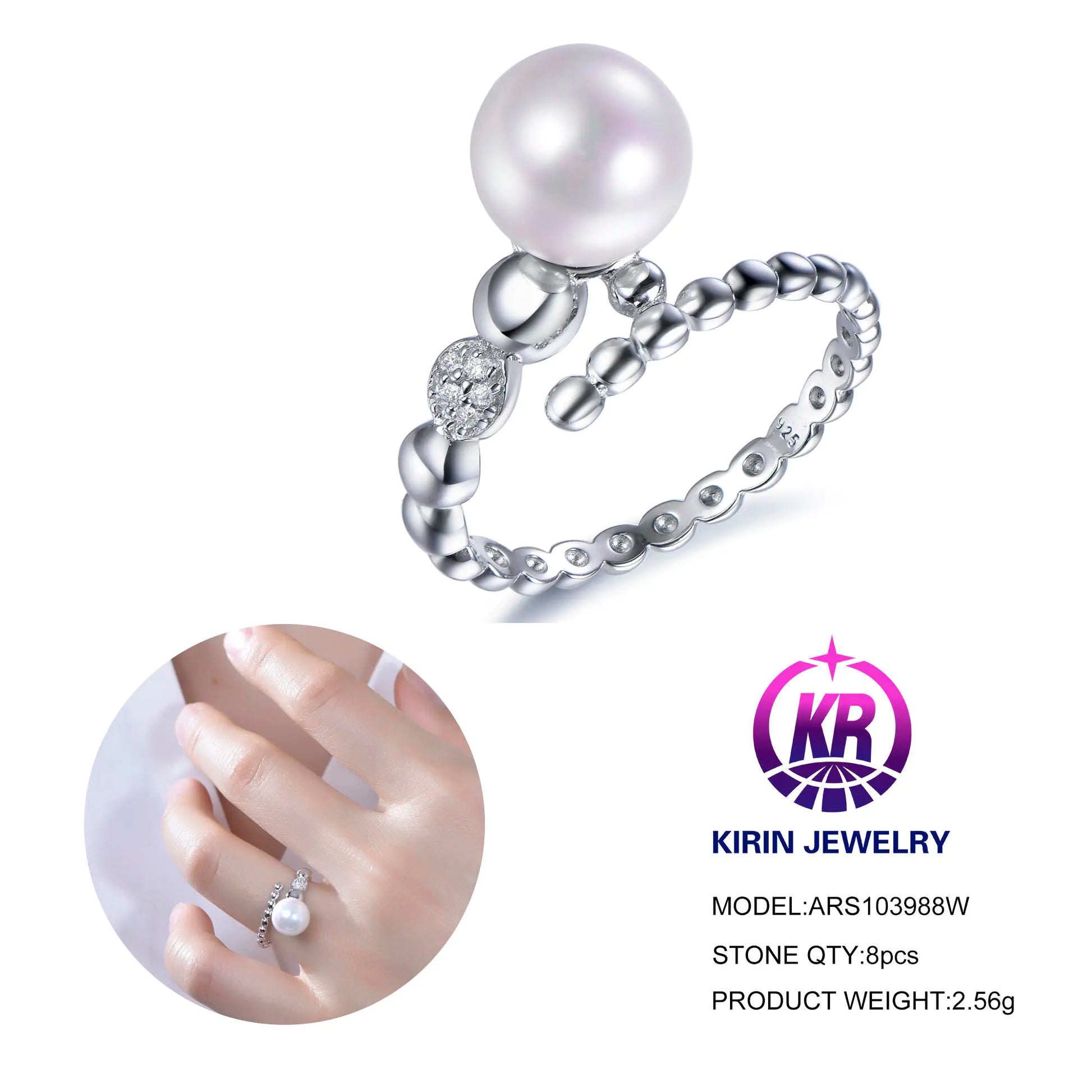 Wholesale 925 Silver CZ Statement Freshwater Cultured Pearl Engagement Rings