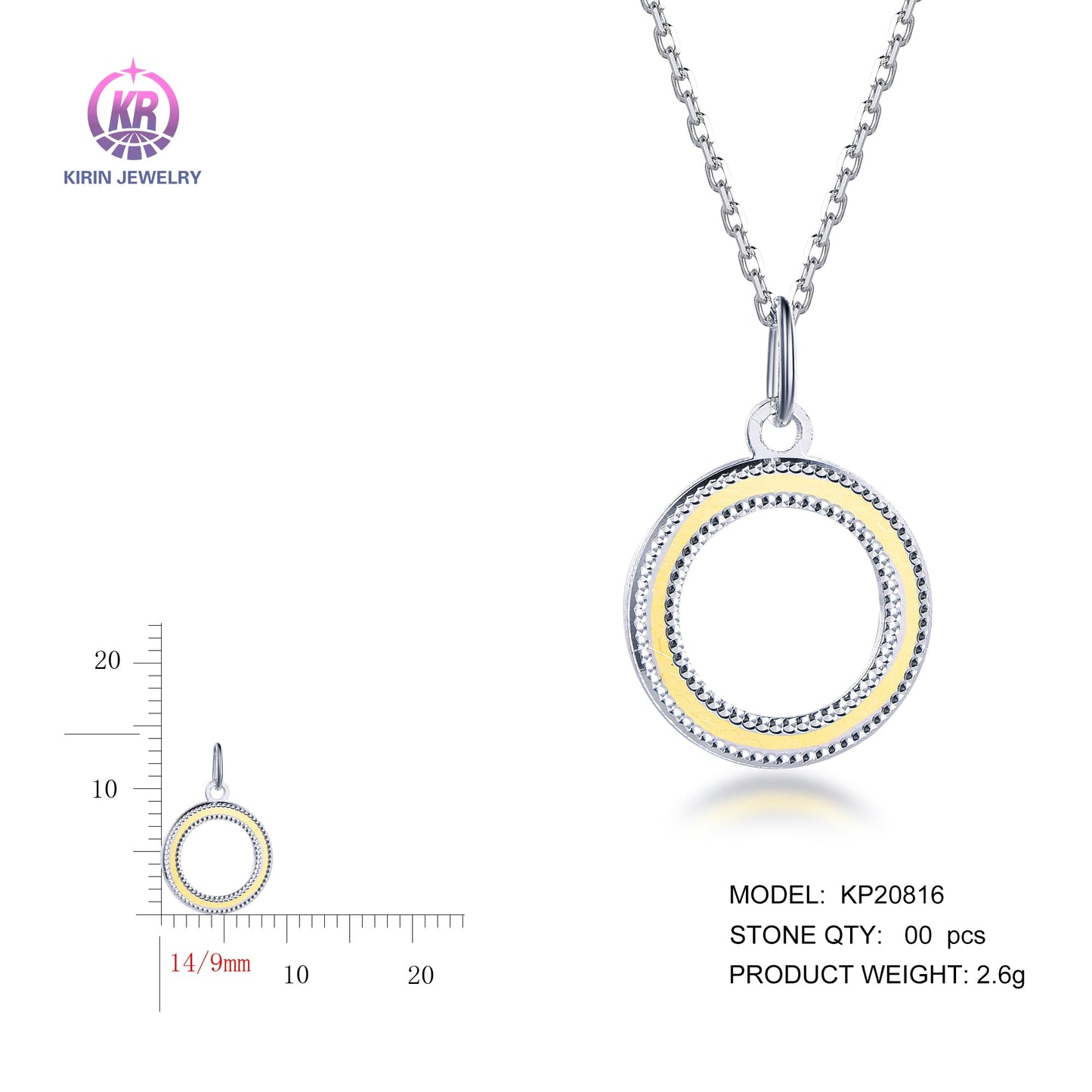 925 silver pendant with 2-tone plating rhodium and 14K gold KP20816