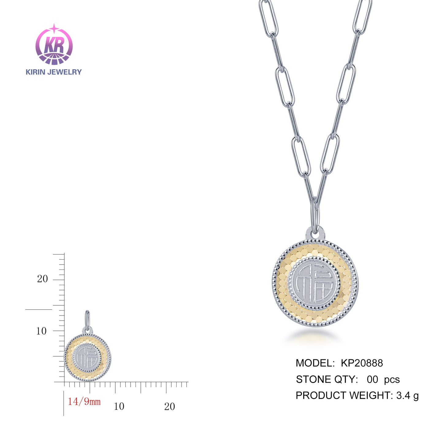 925 silver pendant with 2-tone plating rhodium and 14K gold KP20888