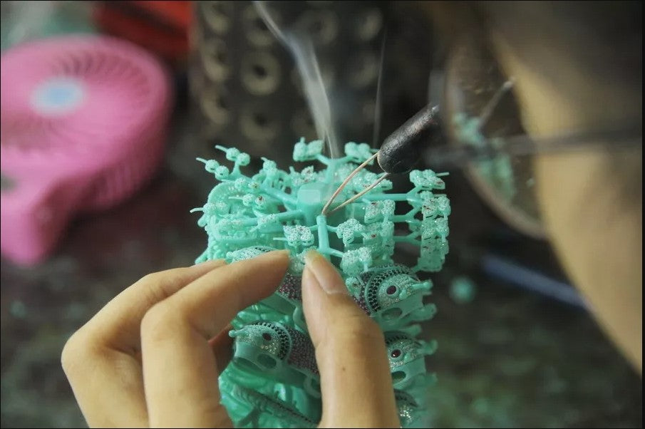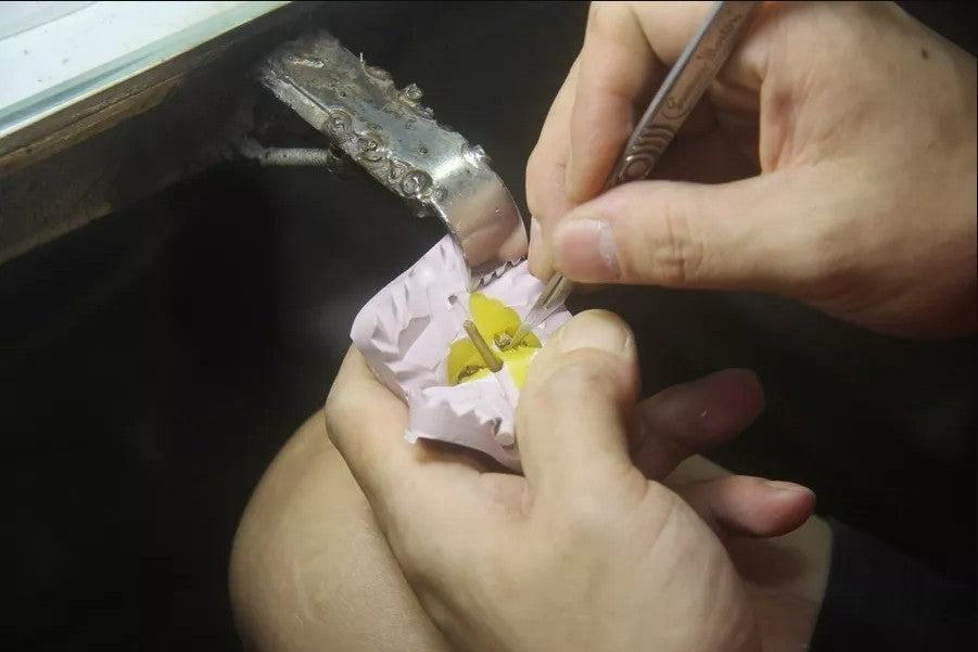 Division of labor fine, not only divided into main stone and side stone, according to the process is more divided into micro-set, claw set, package set, boundless set, concave set, each craftsman has been through years of training, specializing in a skill, each take advantage, and keep improving.