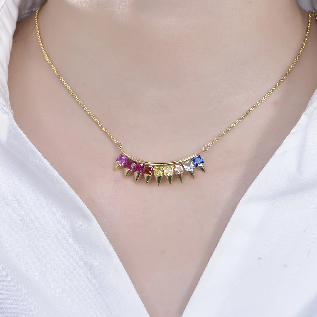 new fashion rainbow baguette necklace 925 sterling silver rainbow diamond necklace for women rainbow stone necklace pendant