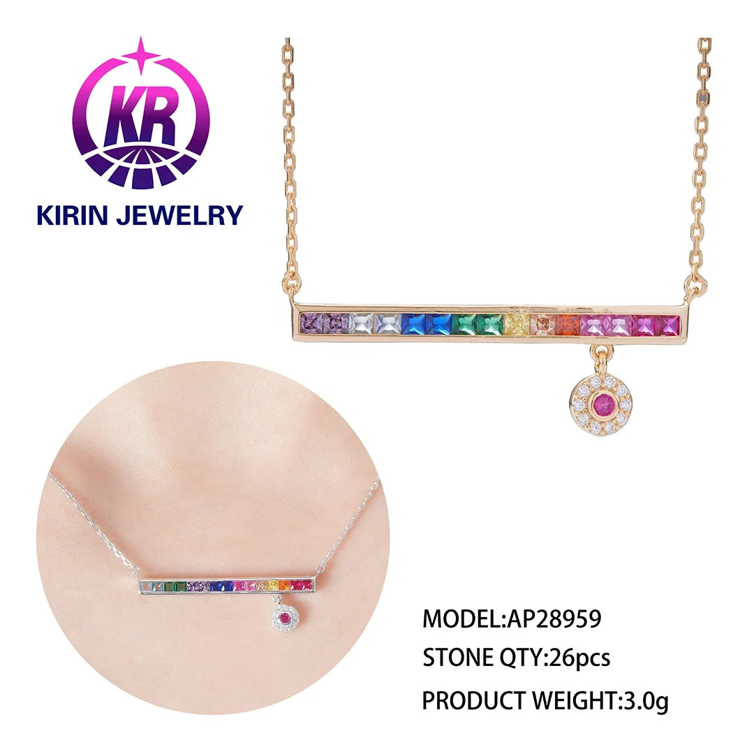 new fashion rainbow baguette necklace 925 sterling silver rainbow diamond necklace for women rainbow stone necklace pendant Individual OPP bag, Ploy bag +A carton or as client request. |