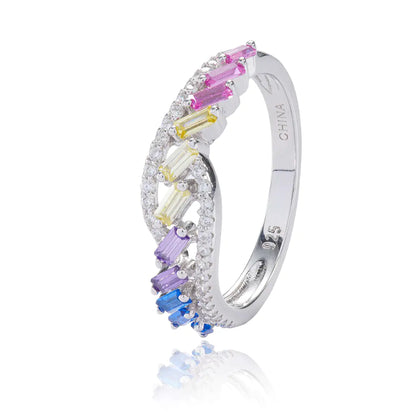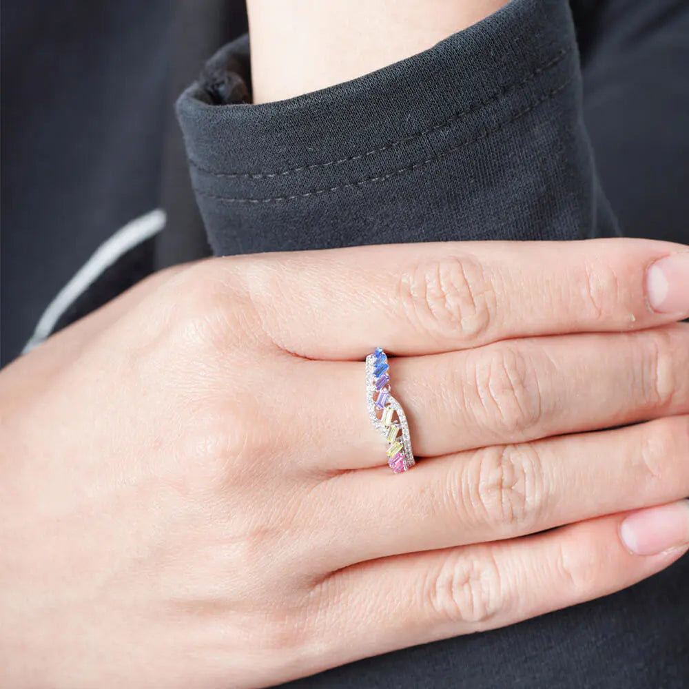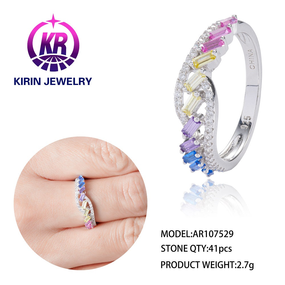 Wholesale 925 Silver CZ Corundum Spinel Rectangular Colorful Gemstone Rainbow Engagement Ring