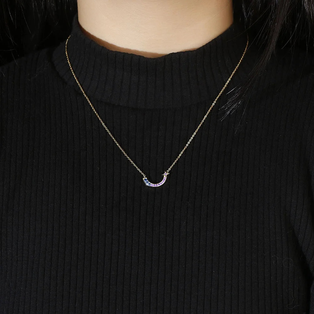 U Rainbow Necklaces 18K PVD Gold Plated 925 Sterling Silver Rainbow Pendant Link Chain Necklace collana catena