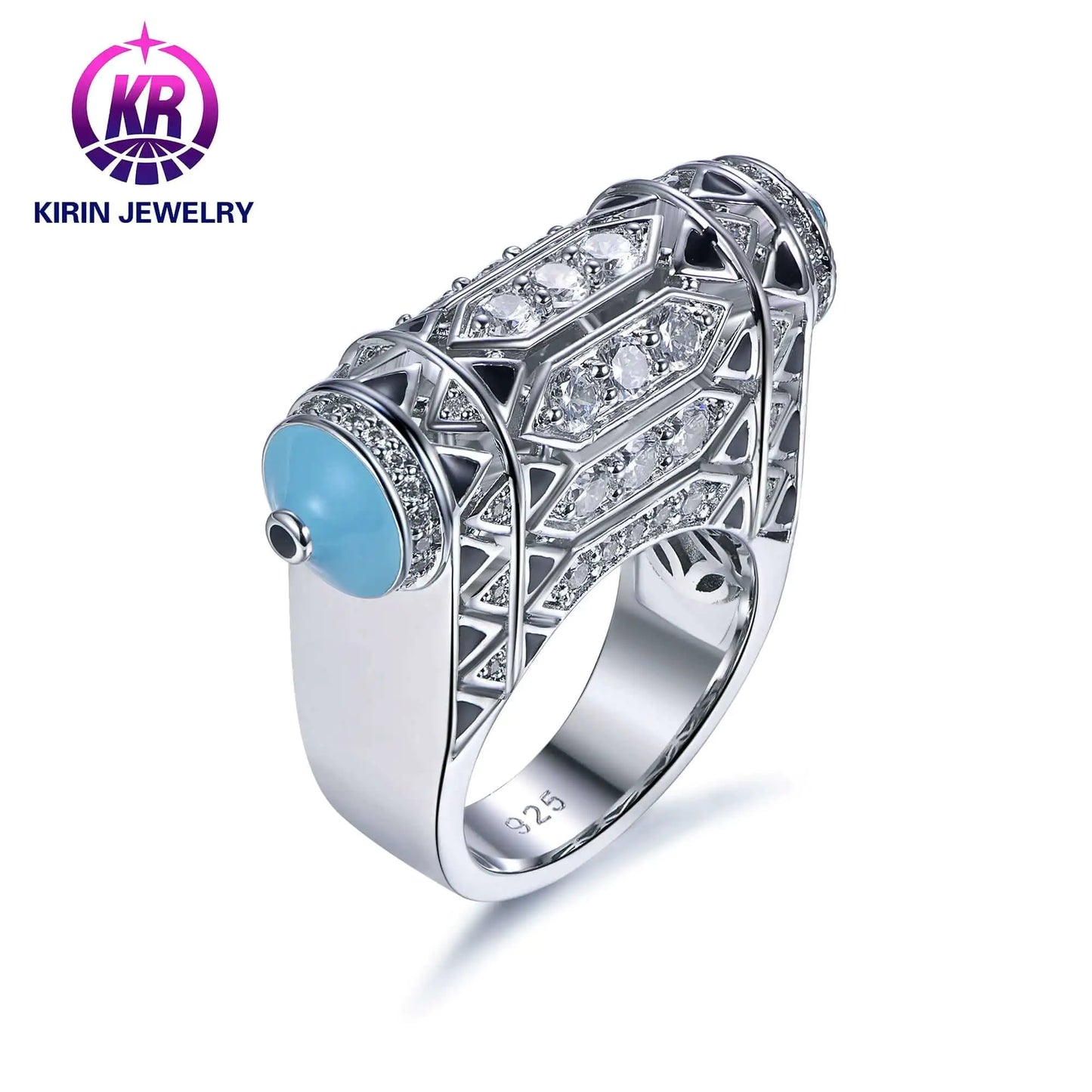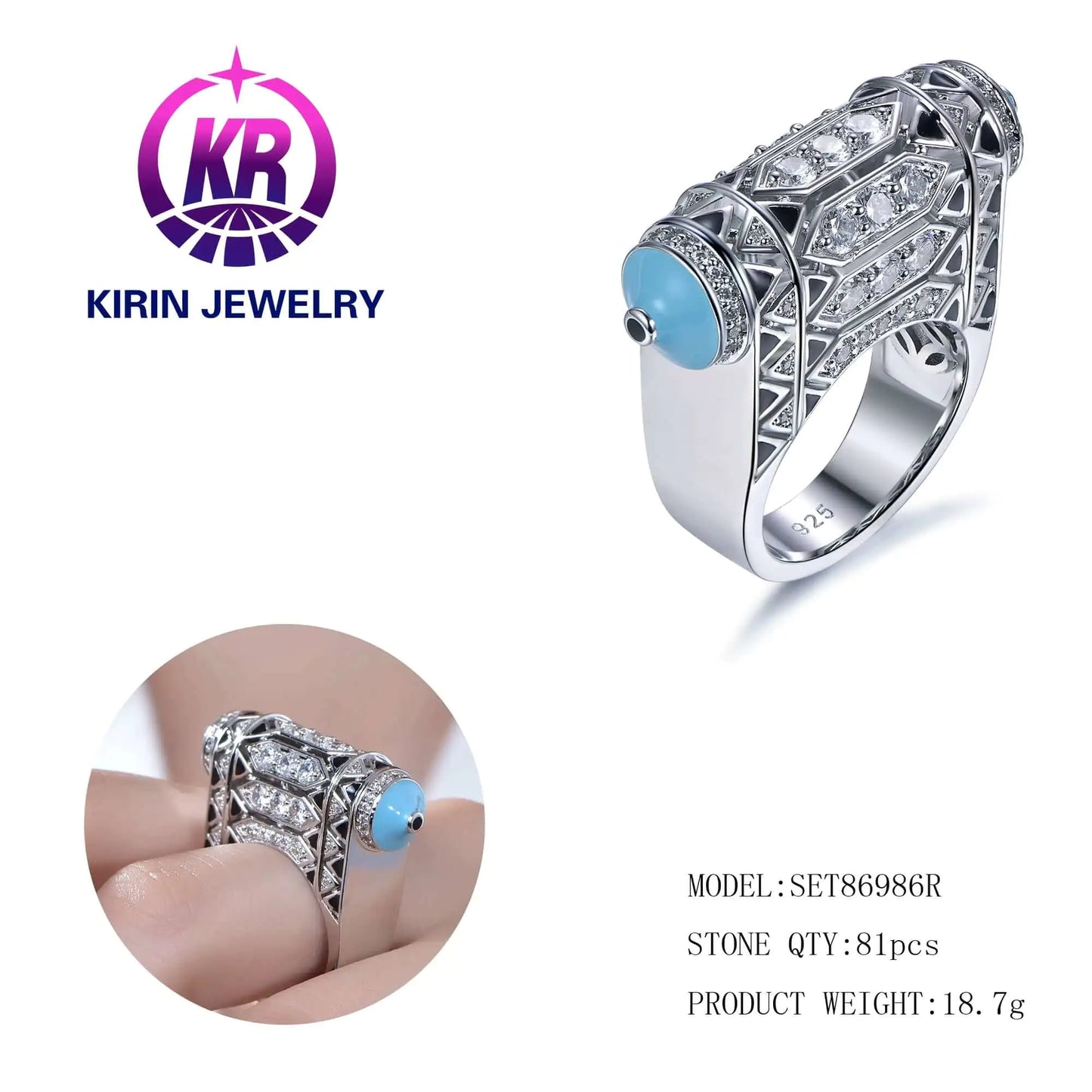 Custom Silver CZ & Enamel Dubai Accessories Statement Retro Silver Rings