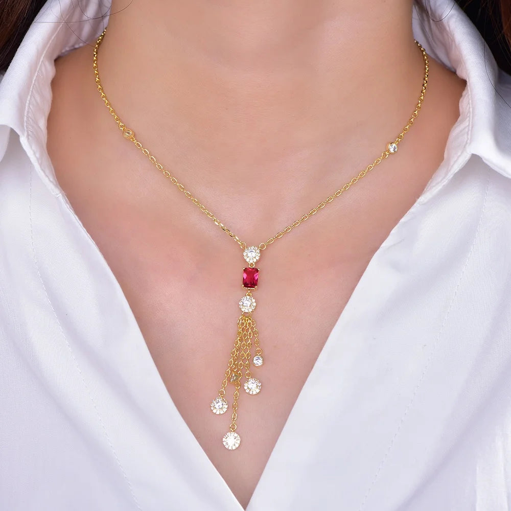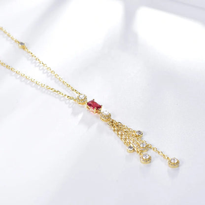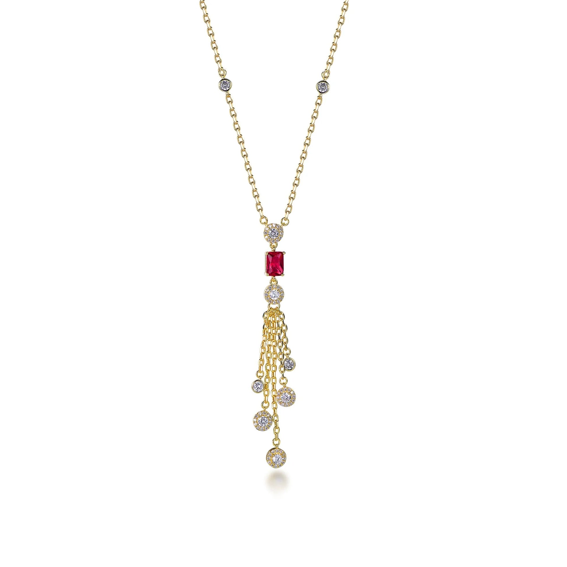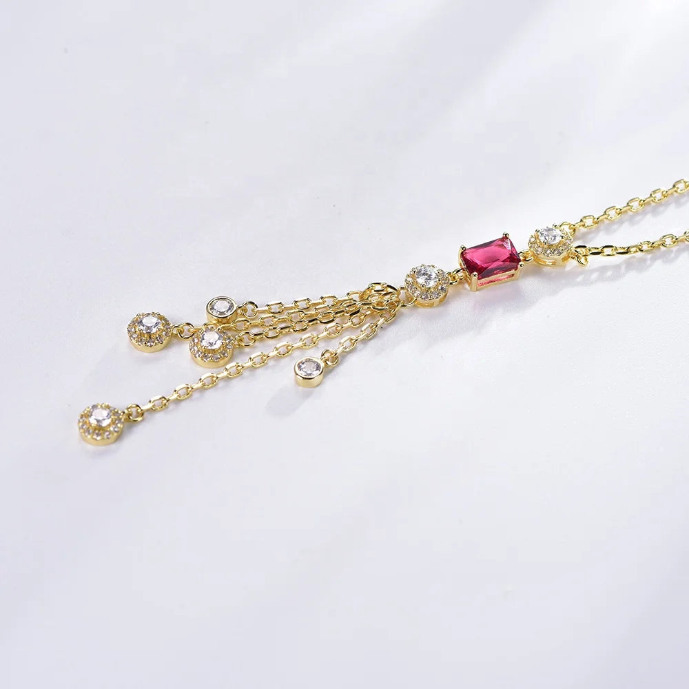 collar de oro AAA cz ruby diamond choker necklace 18k gold chain necklace tassel real solid gold necklace