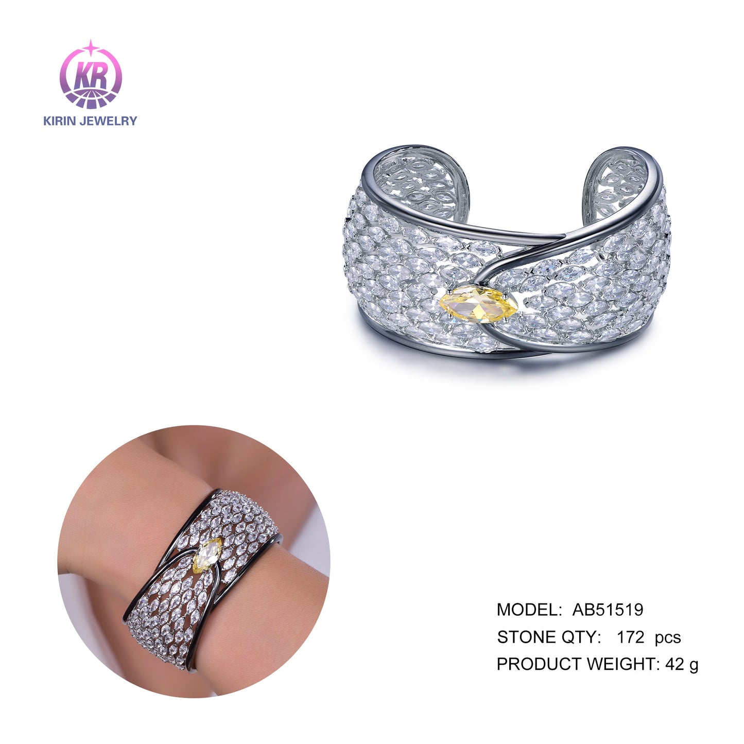 Wholesale Silver Cubic Zircon Lab Created Citrine Statement Wide Cuff Bangle