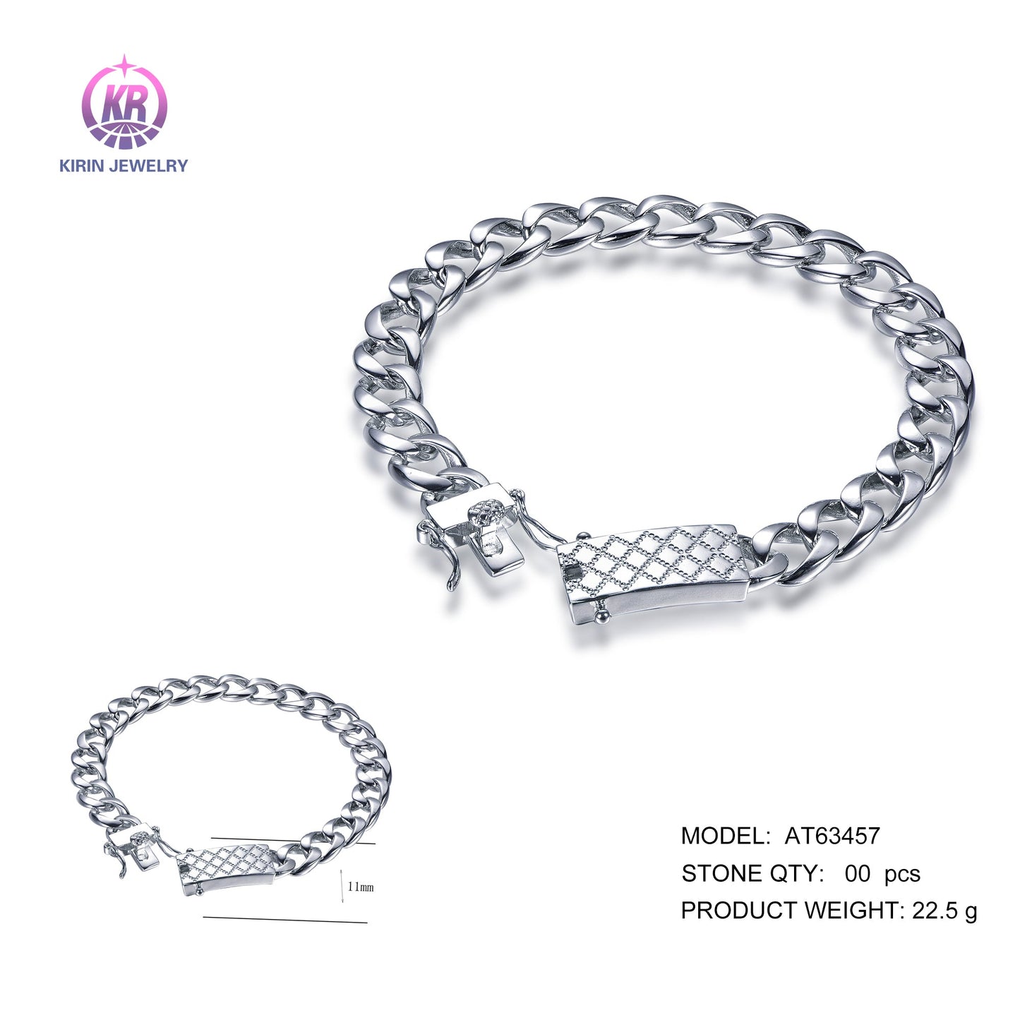 Wholesale 925 Silver Enamel Thick Curb Miami Cuban Link Bracelets