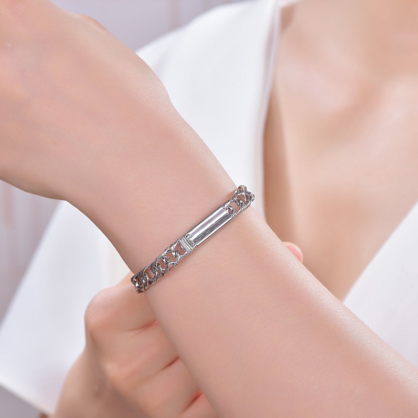 Wholesale 925 Silver Link Chain Bar Personalized Bangle Bracelet
