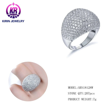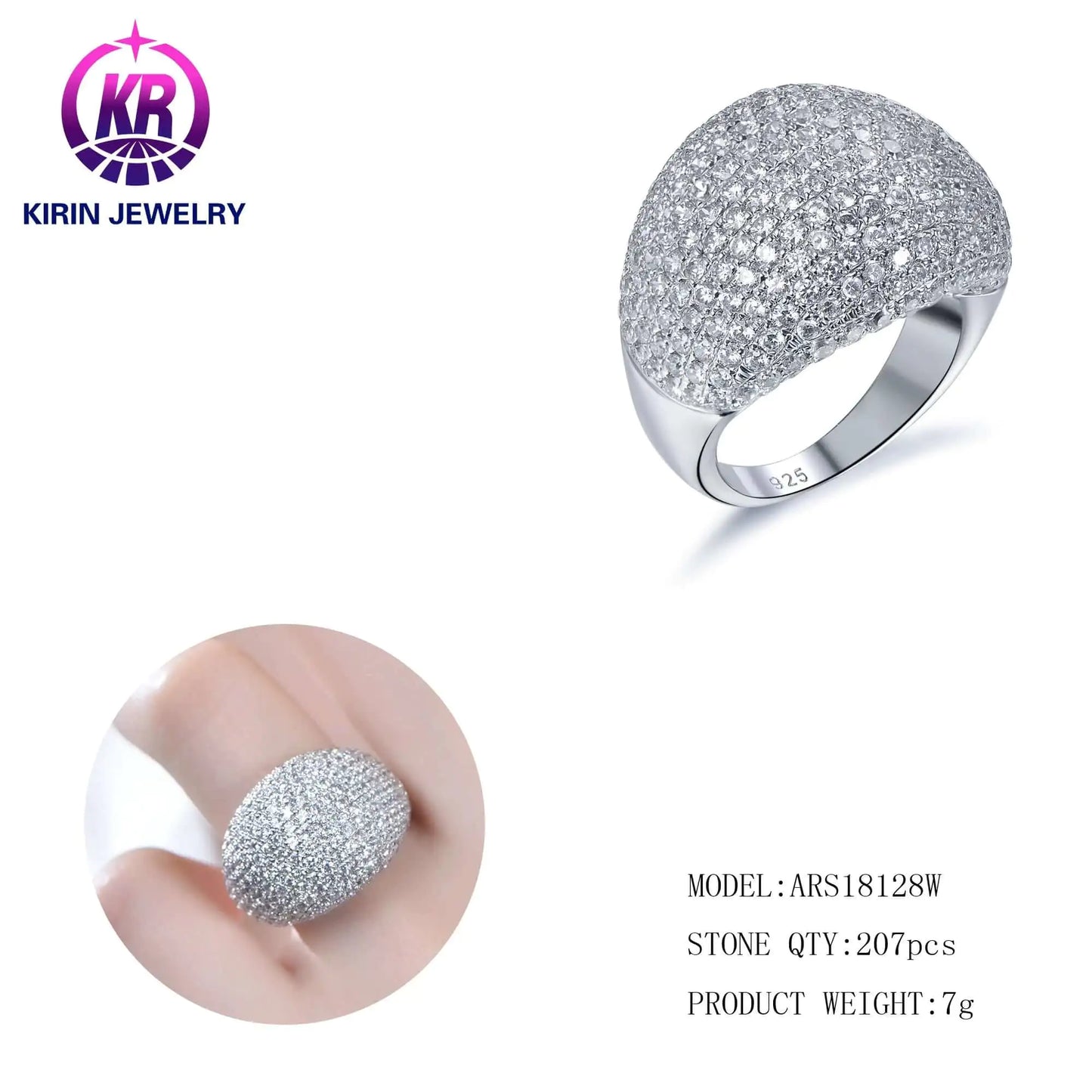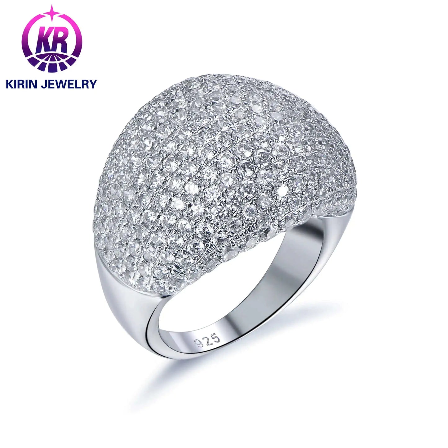 Wholesale 925 Silver Cubic Zirconia Cluster Wide Statement Engagement Silver Dome Ring