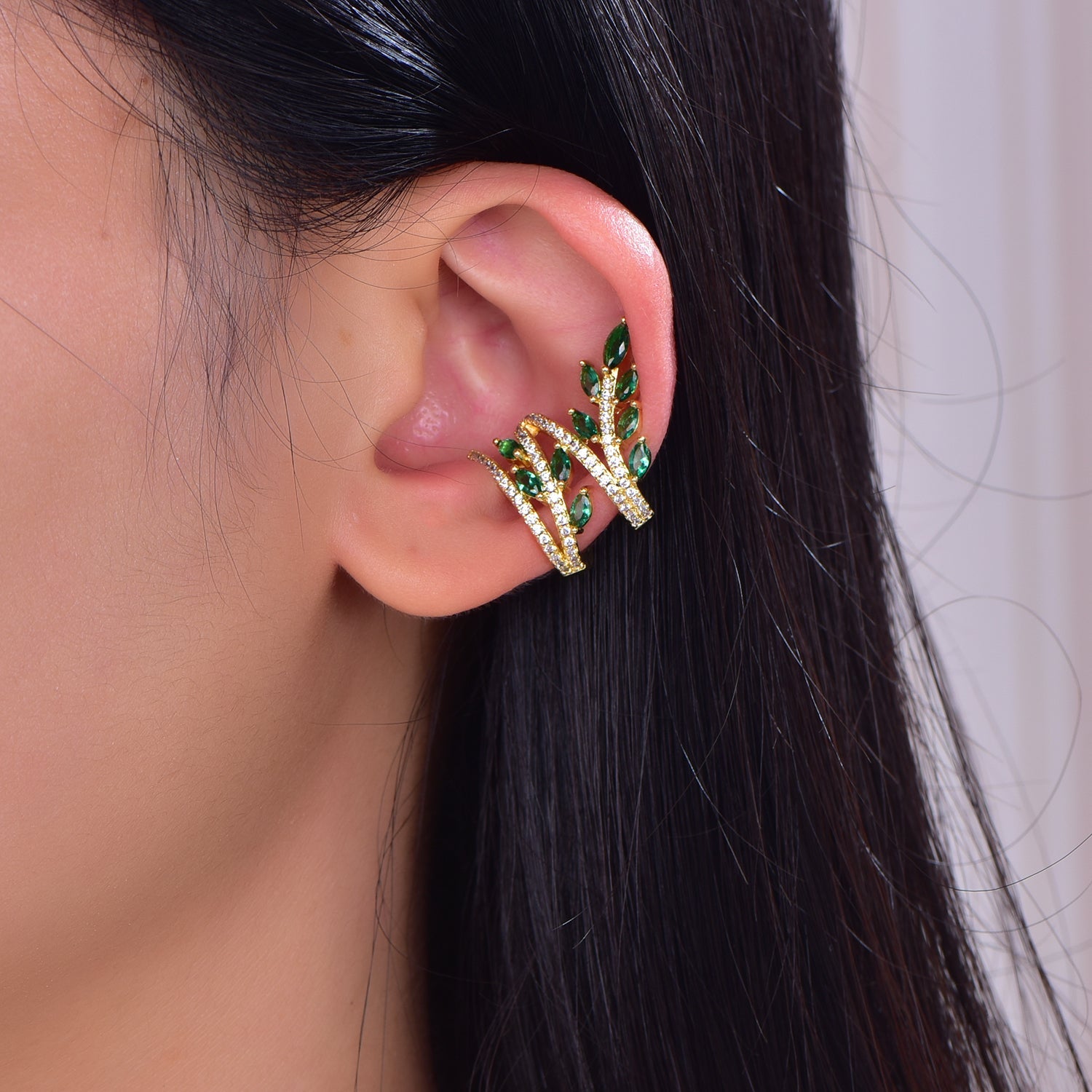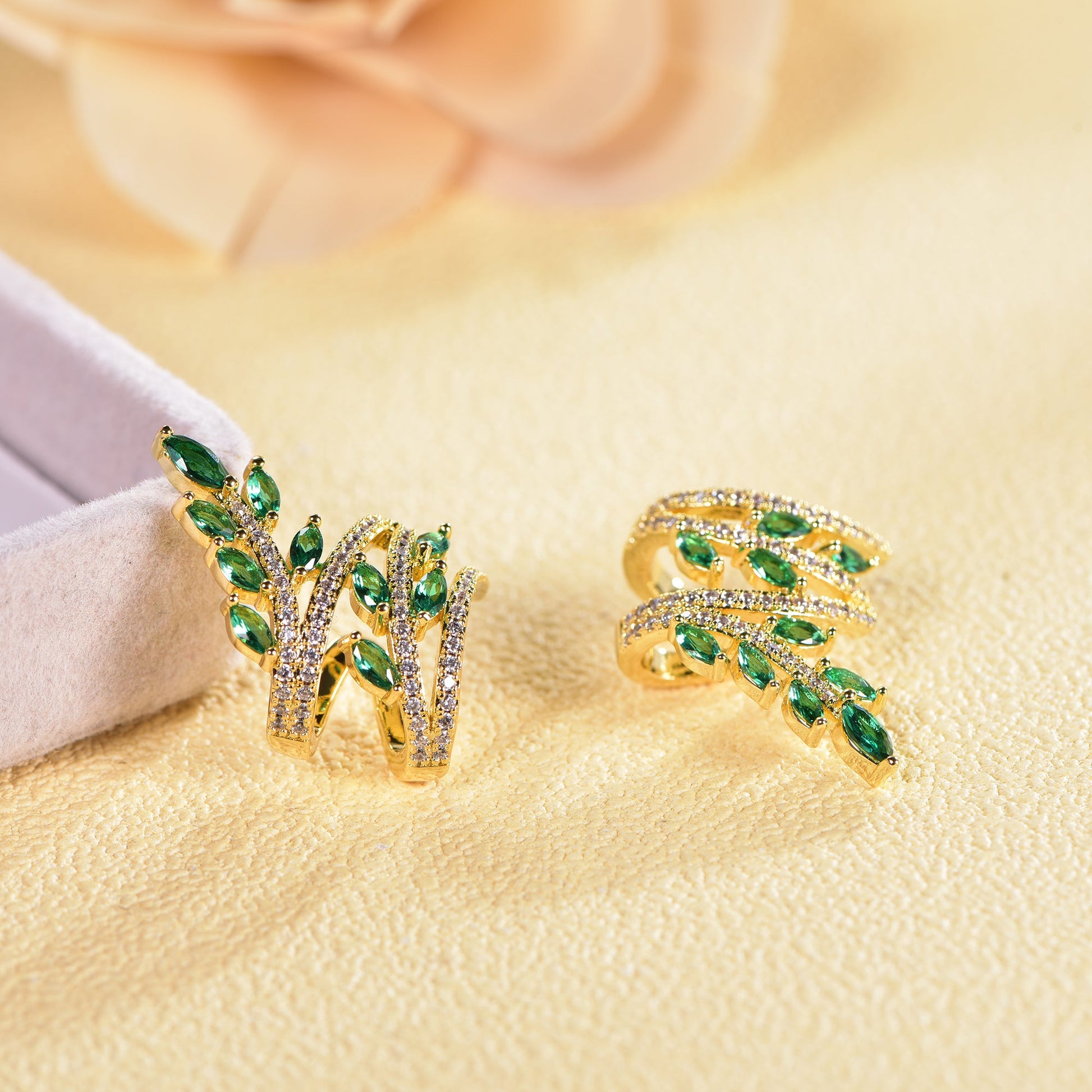 925 silver earrings with 14K gold plating emerald CZ KE32672