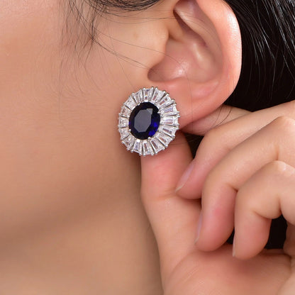 Sterling silver earrings 925 blue stone earrings s925 micro zirconia stud earrings