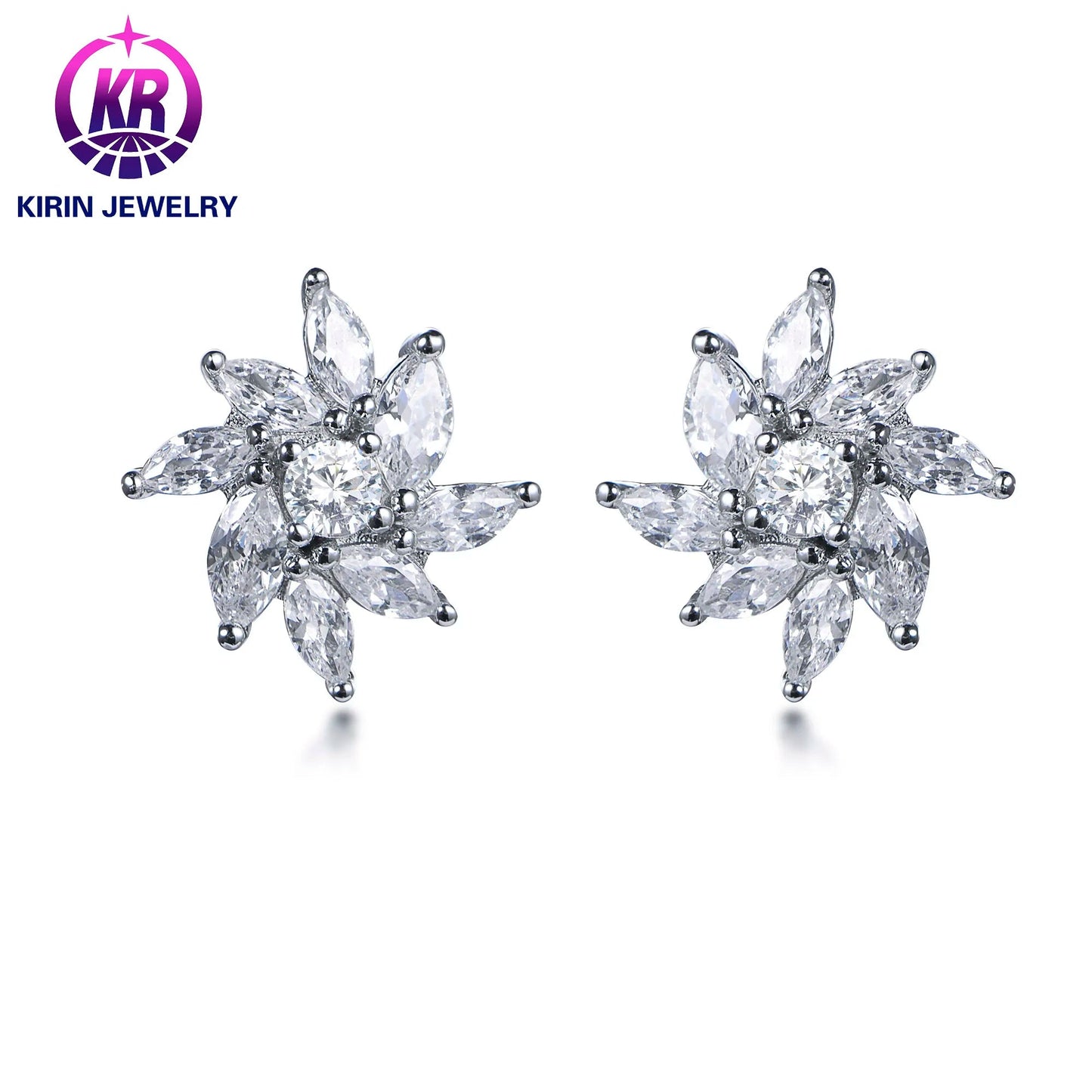 High quality 925 sterling silver earrings Luxury Statement Simple flower shaped exquisite stud earrings Bridal earrings Women's jewelry