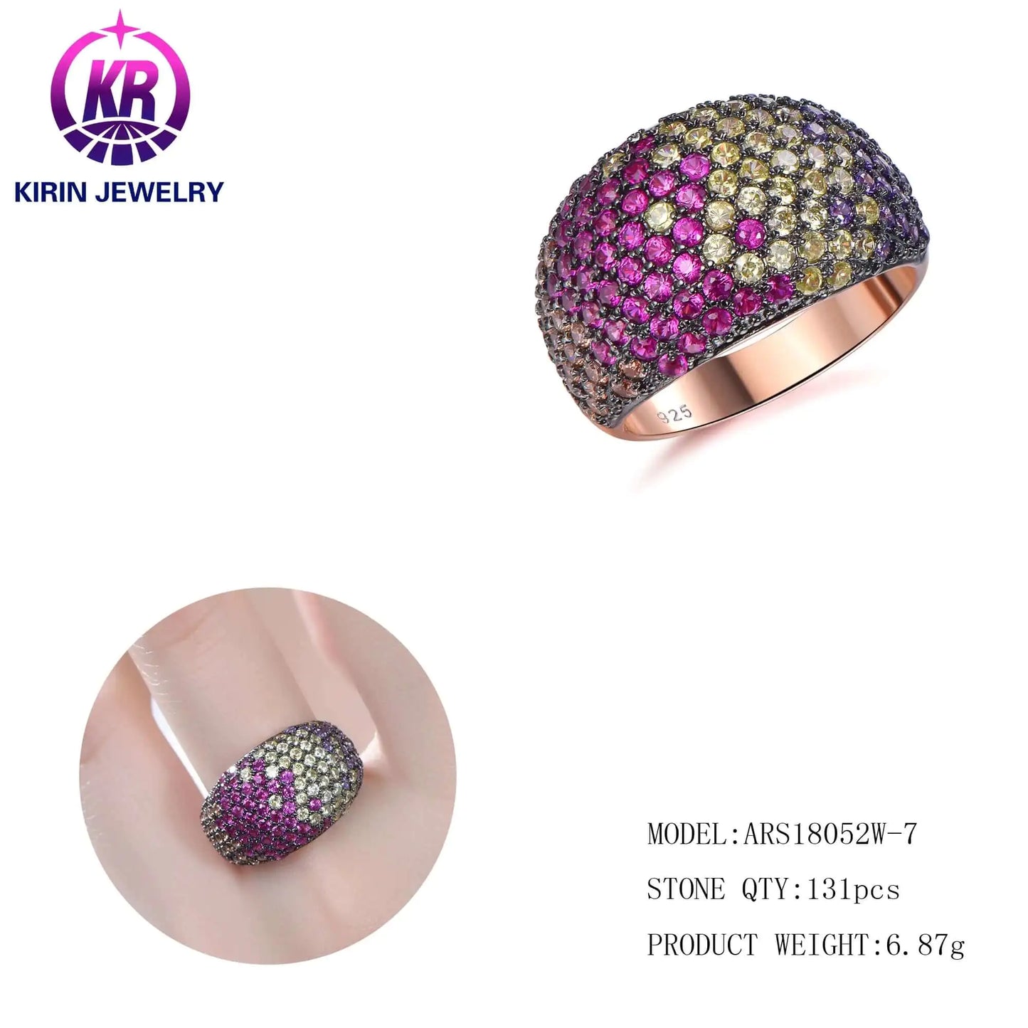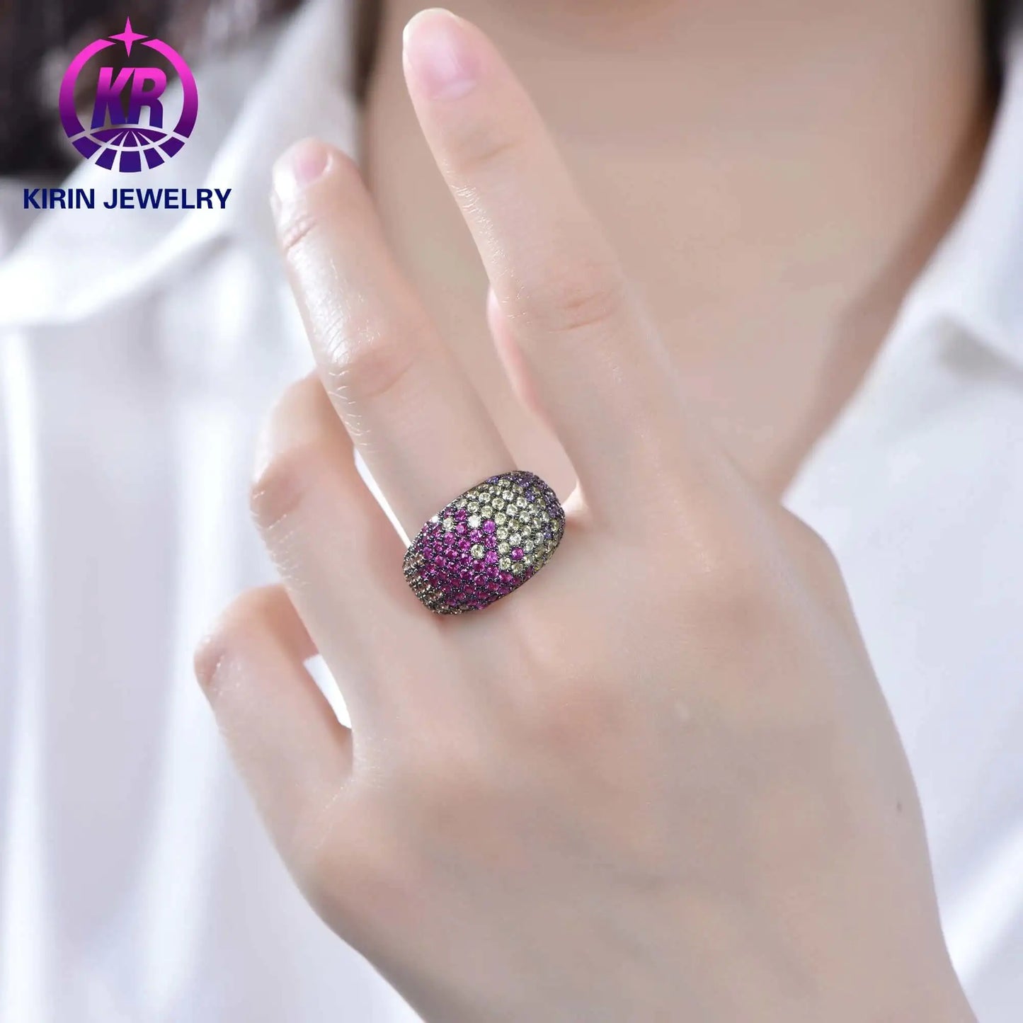 Custom Silver Rose Gold Plated CZ & Corundum Thick Band Engagement Ring