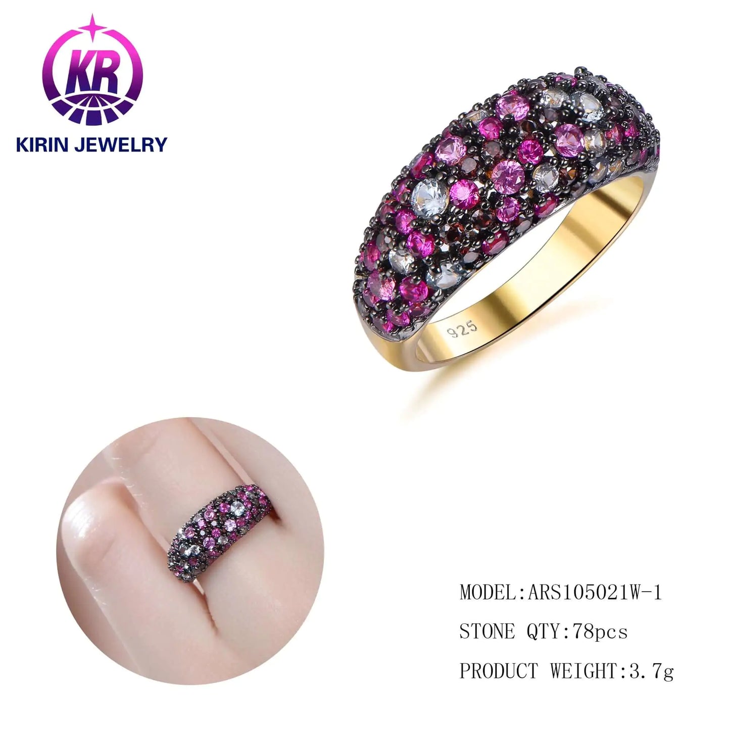Custom Silver Gold Plated CZ & Corundum & Spinel Vintage Style Engagement Ring