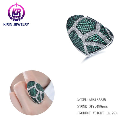 Custom Silver CZ & Green Spinel Personalized Pattern Wide Engagement Rings