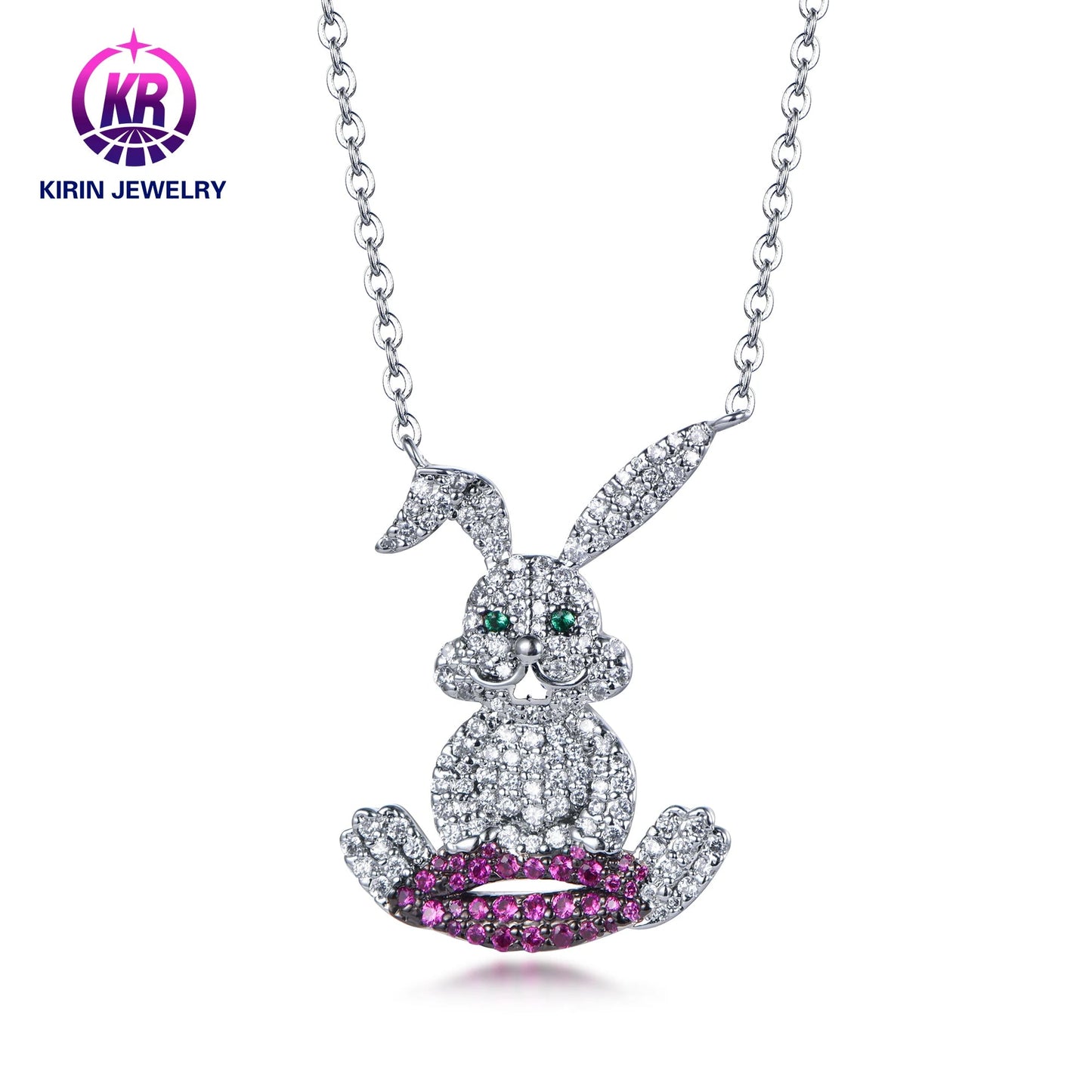 Fashion Women Jewelry 925 Pendants Cute Charm Animal Pendants Cubic Zirconia Necklace Rabbit Diamond Jewelry