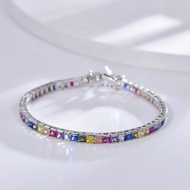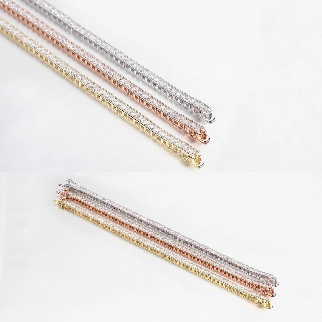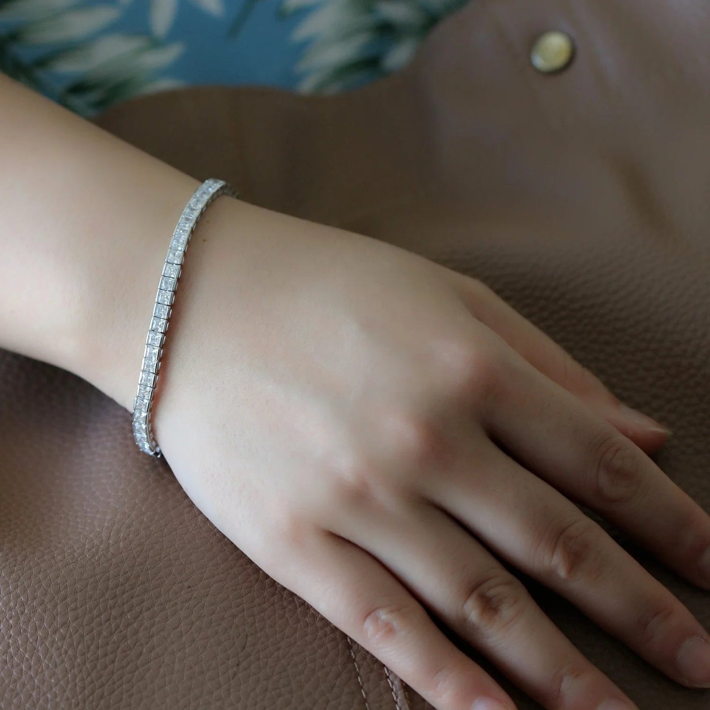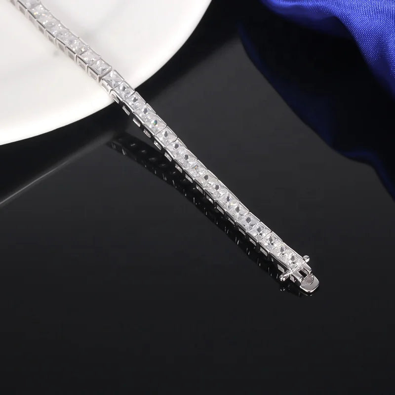 Custom Silver Cubic Zircon Lab Created Square Diamond Tennis Bracelet