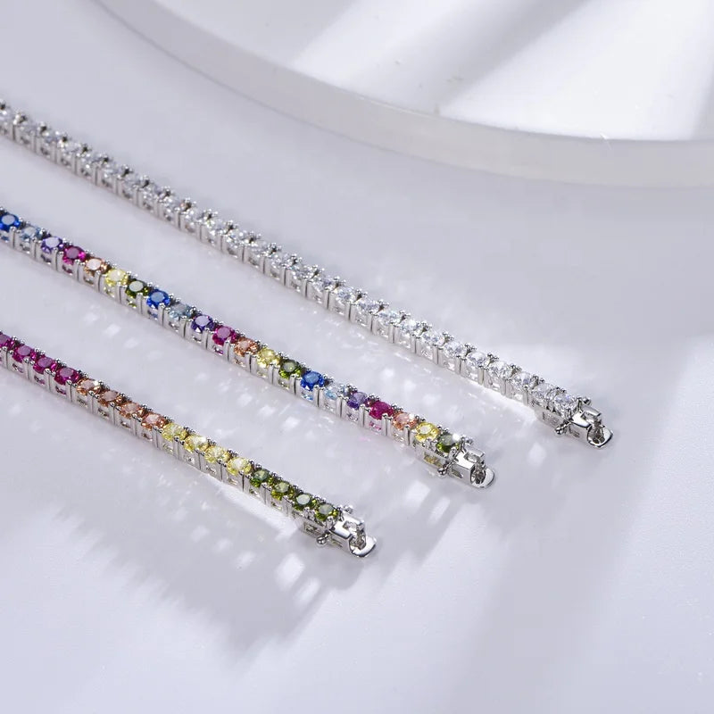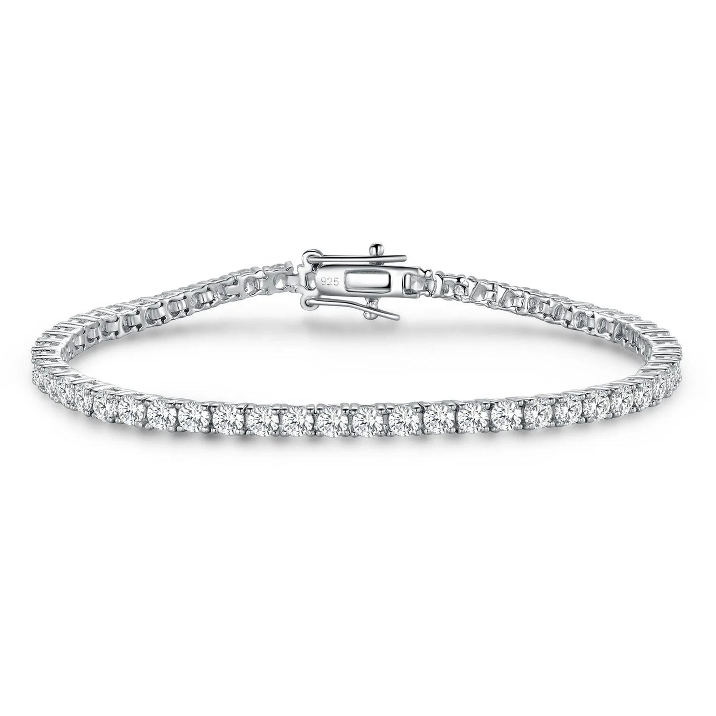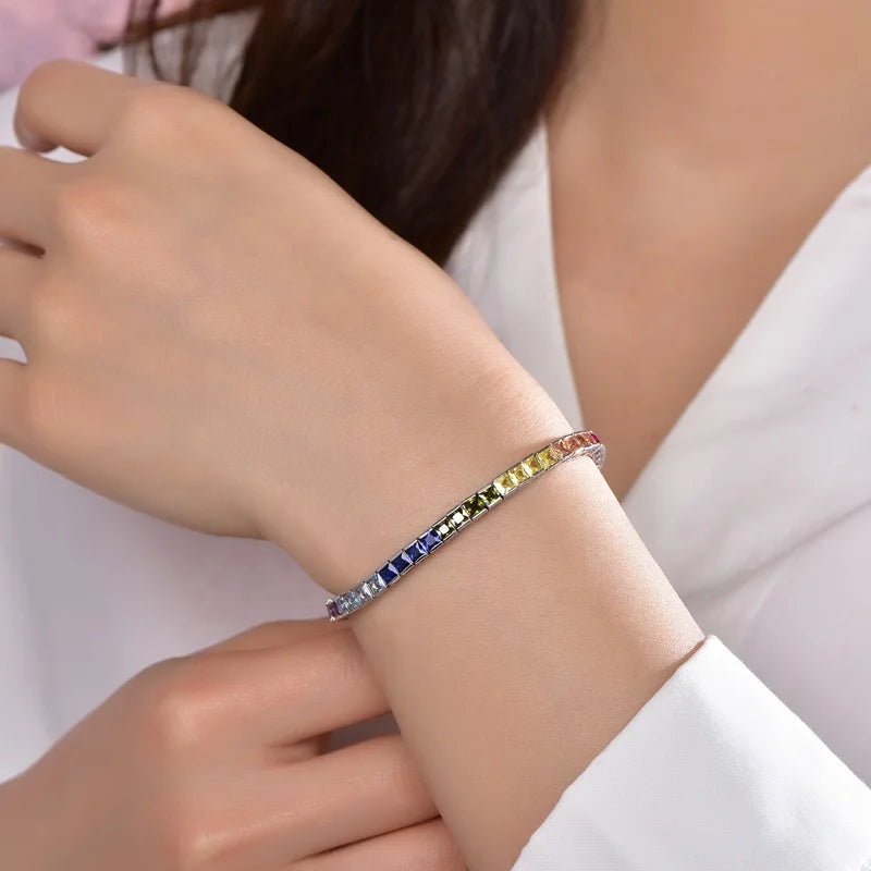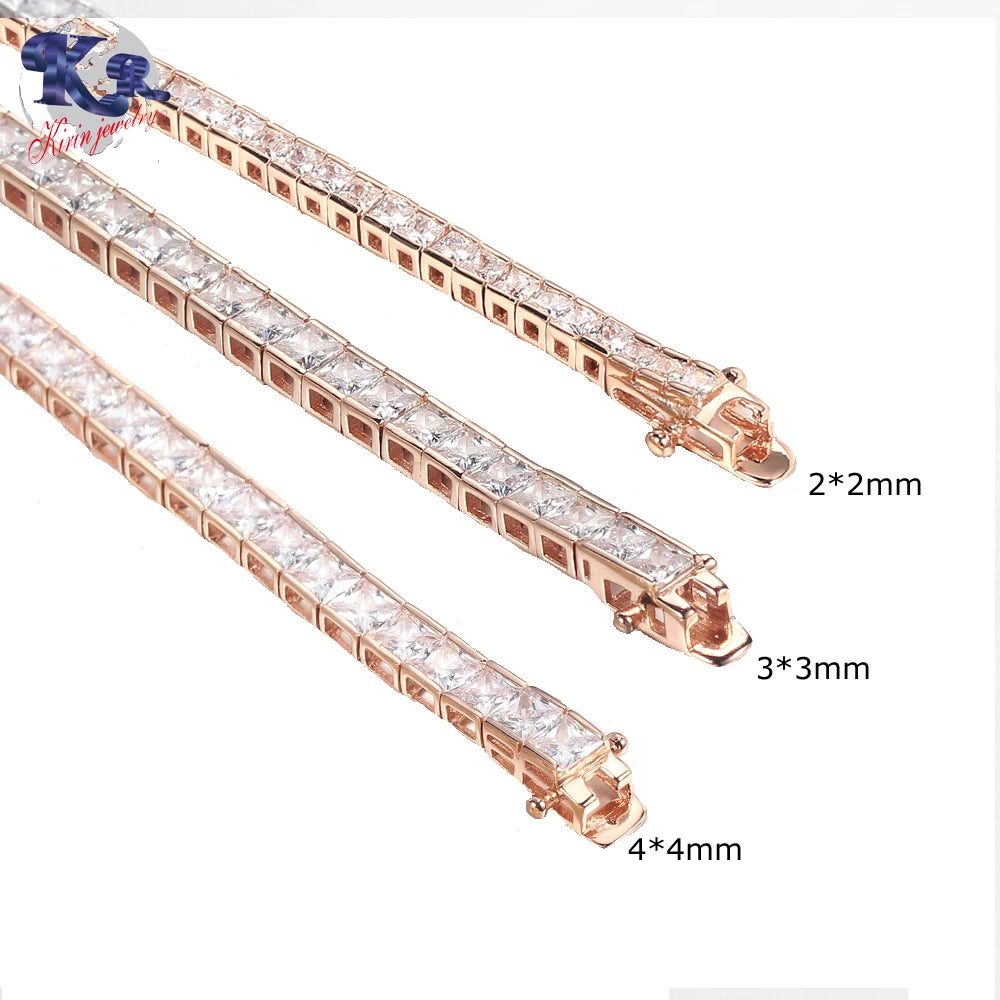 Custom Silver Cubic Zircon Lab Created Square Diamond Tennis Bracelet